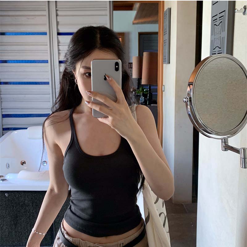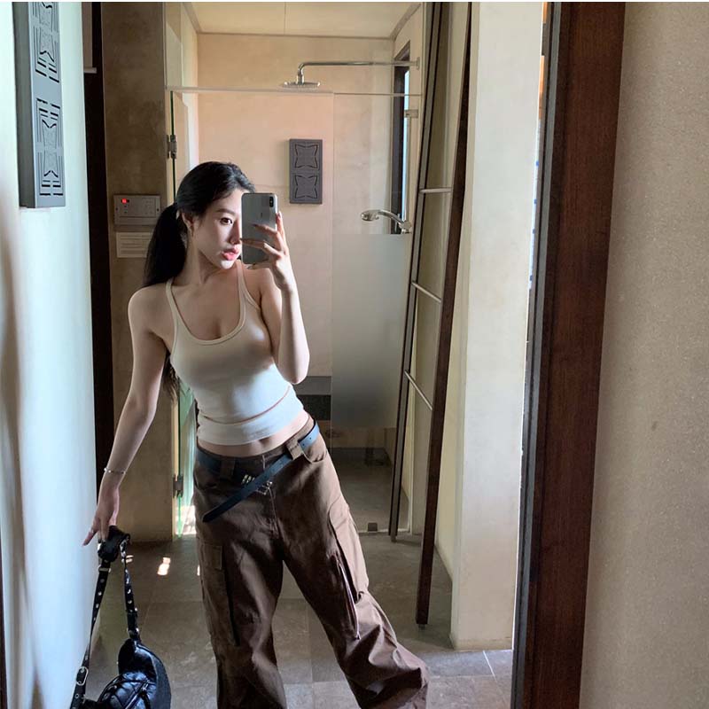 タンクトップレディースTシャツノースリーブUネックロゴプリント