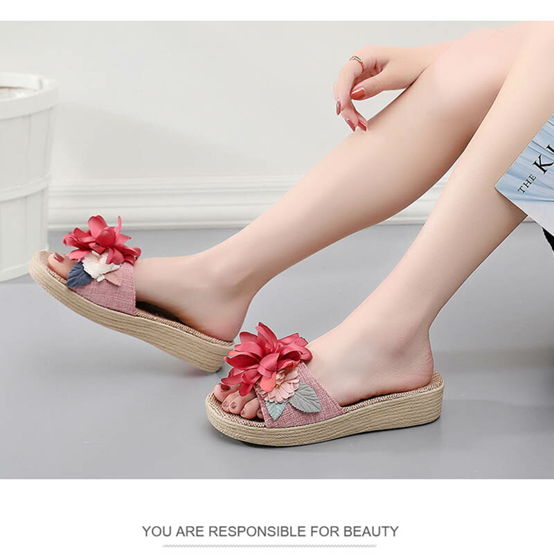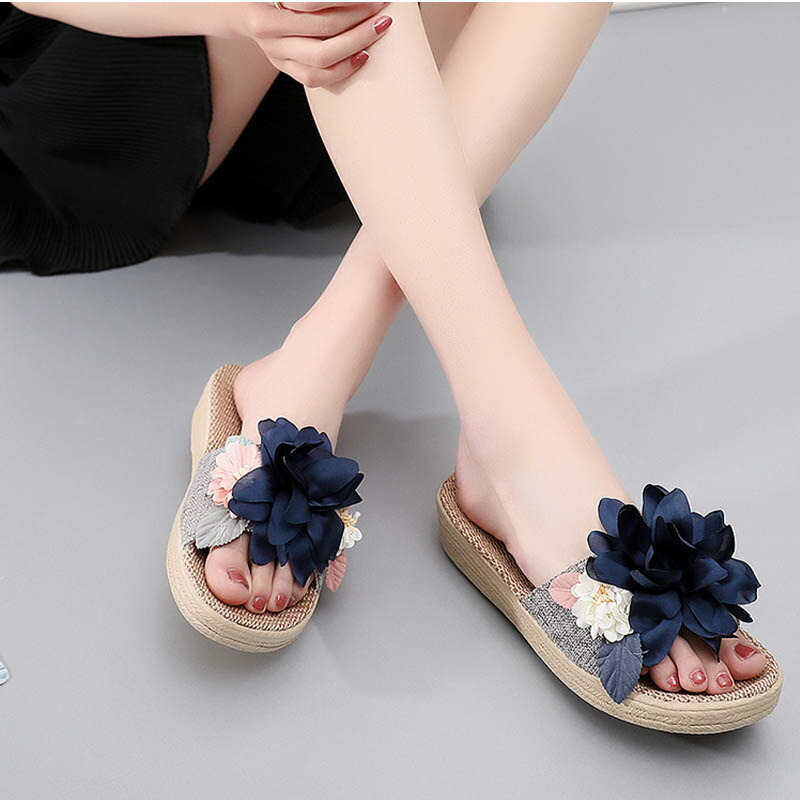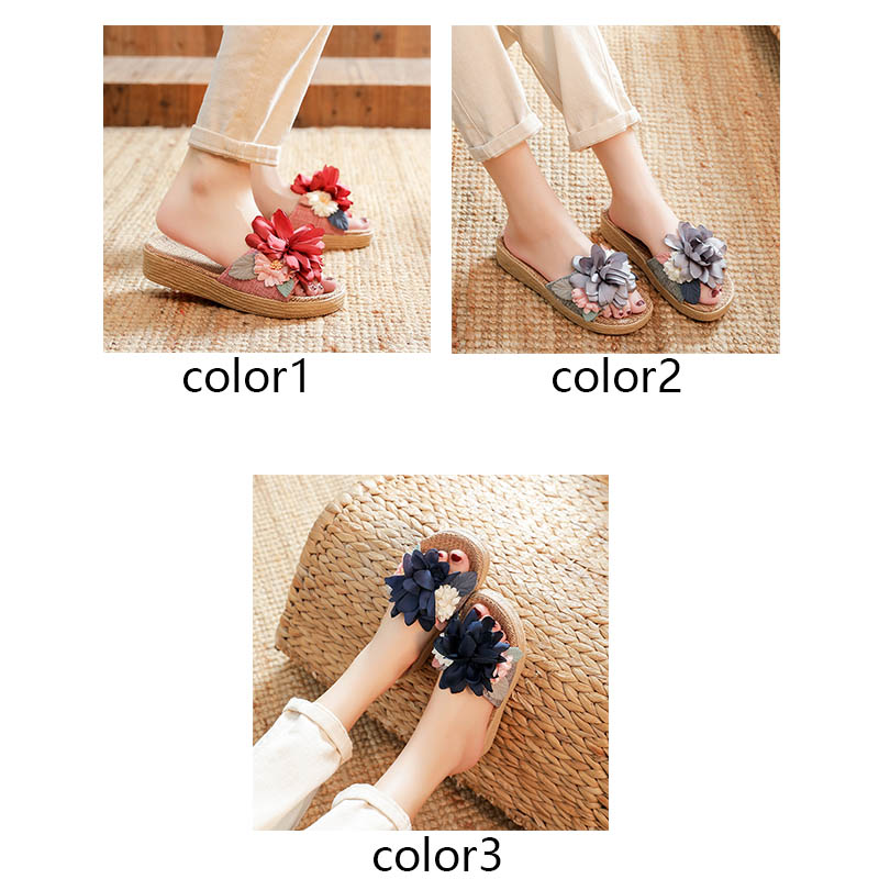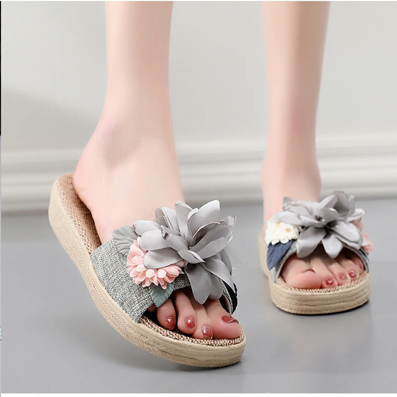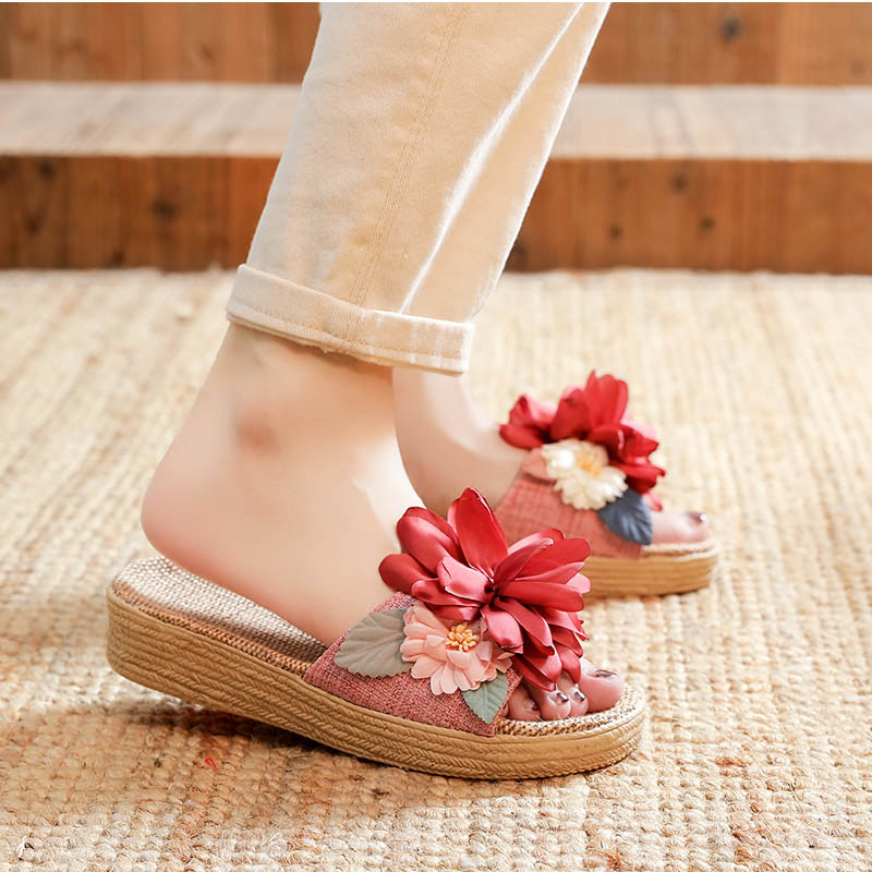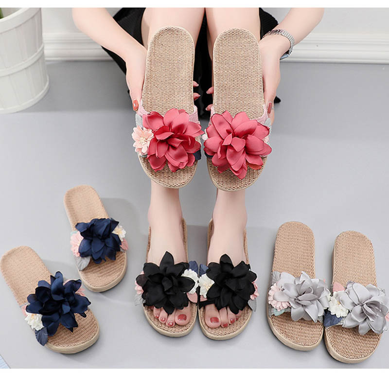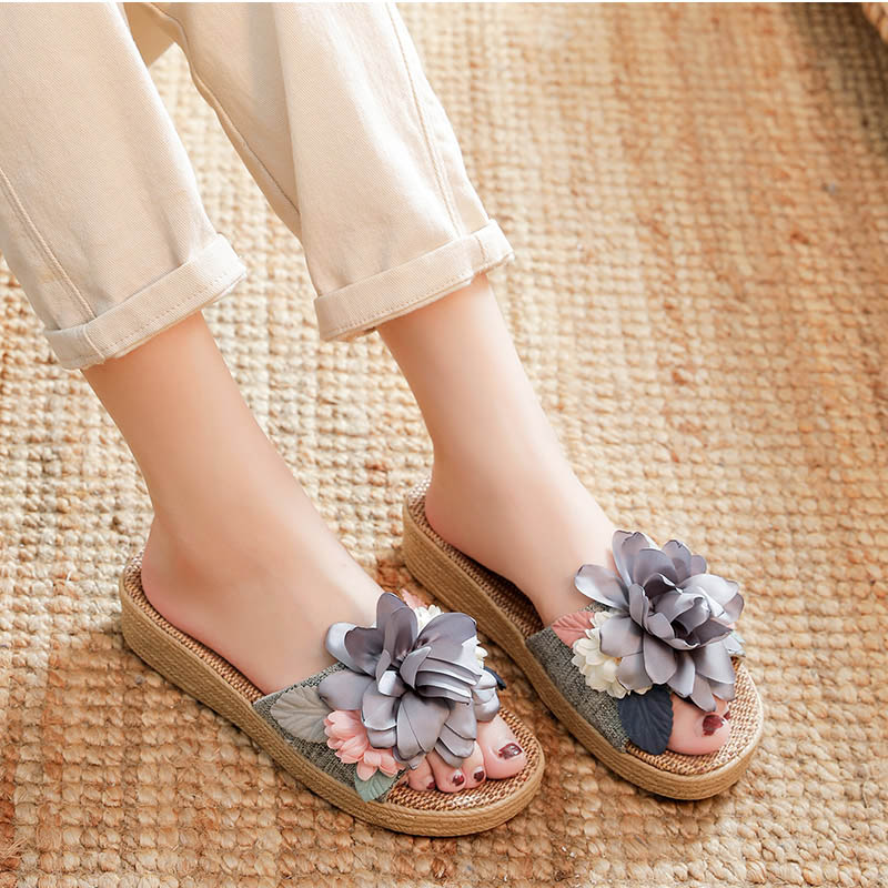 スリッパ 夏用 室内 麻 前開き リネ