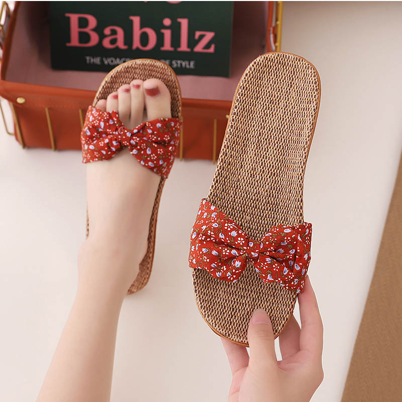 サンダル レディース 花柄 亜麻 アジ