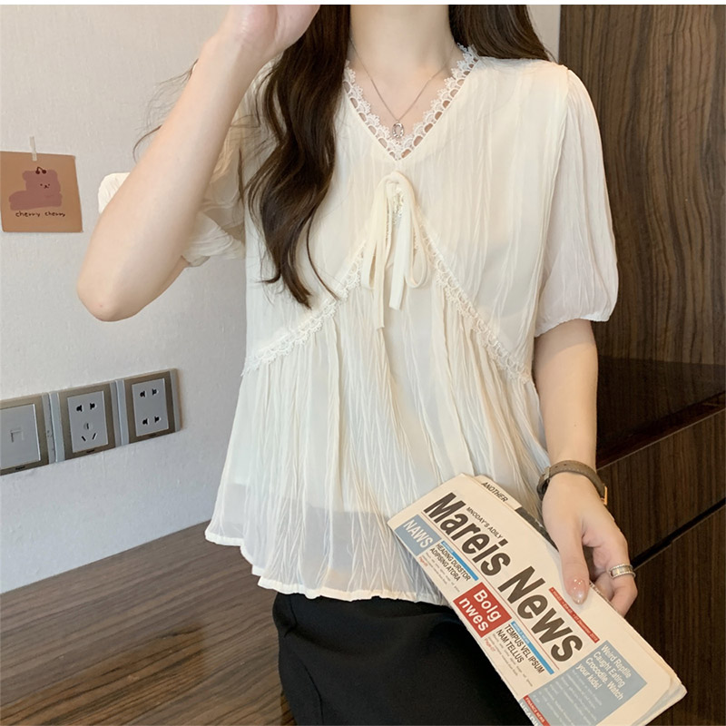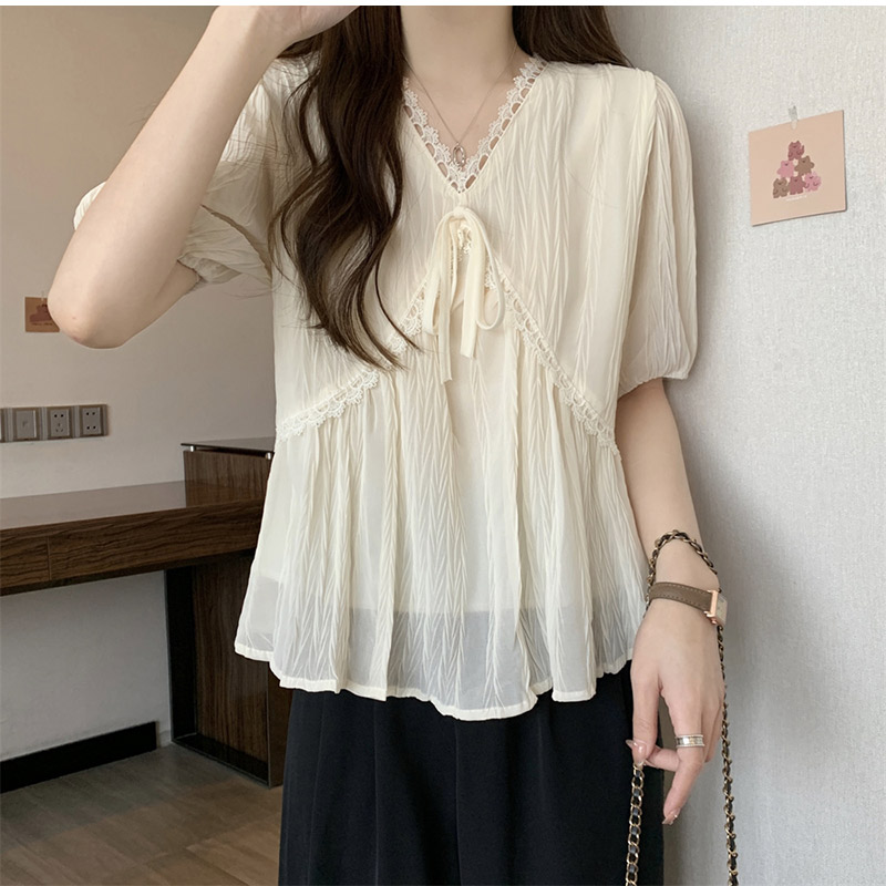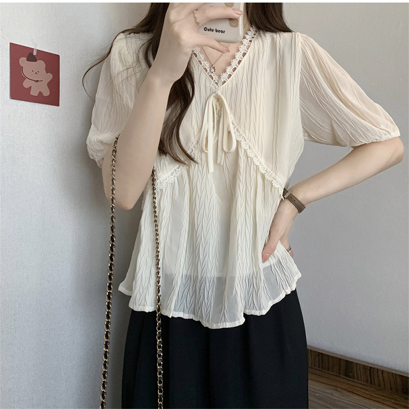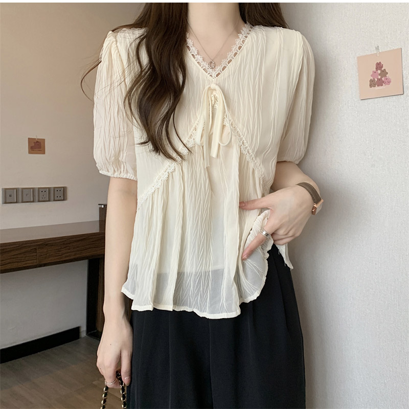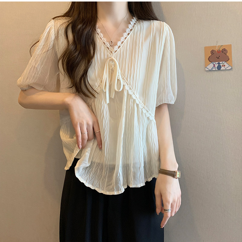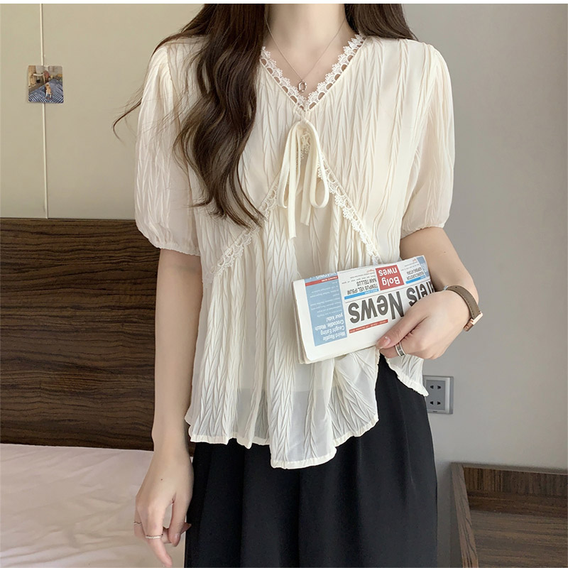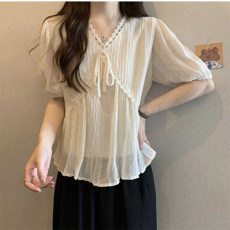シアースリーブ ドッキングシャツ ボウタイシャツブラウス