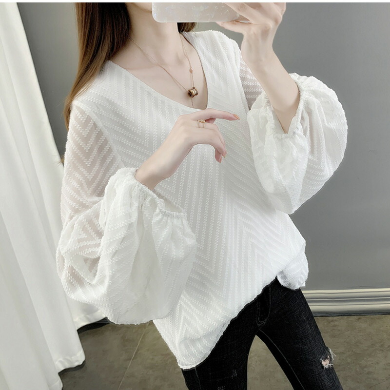 シフォンブラウス シアーブラウス ボリューム袖