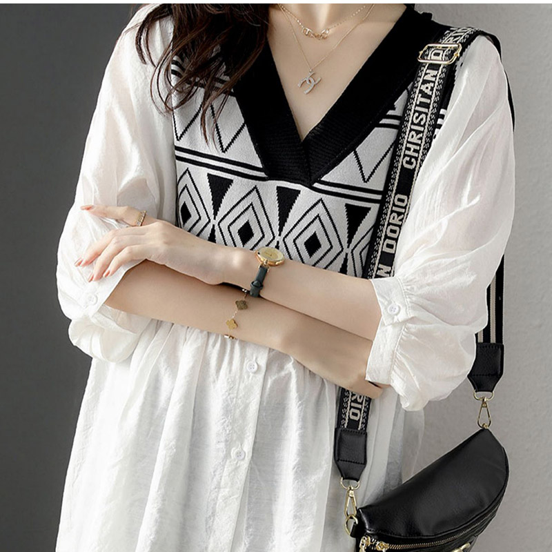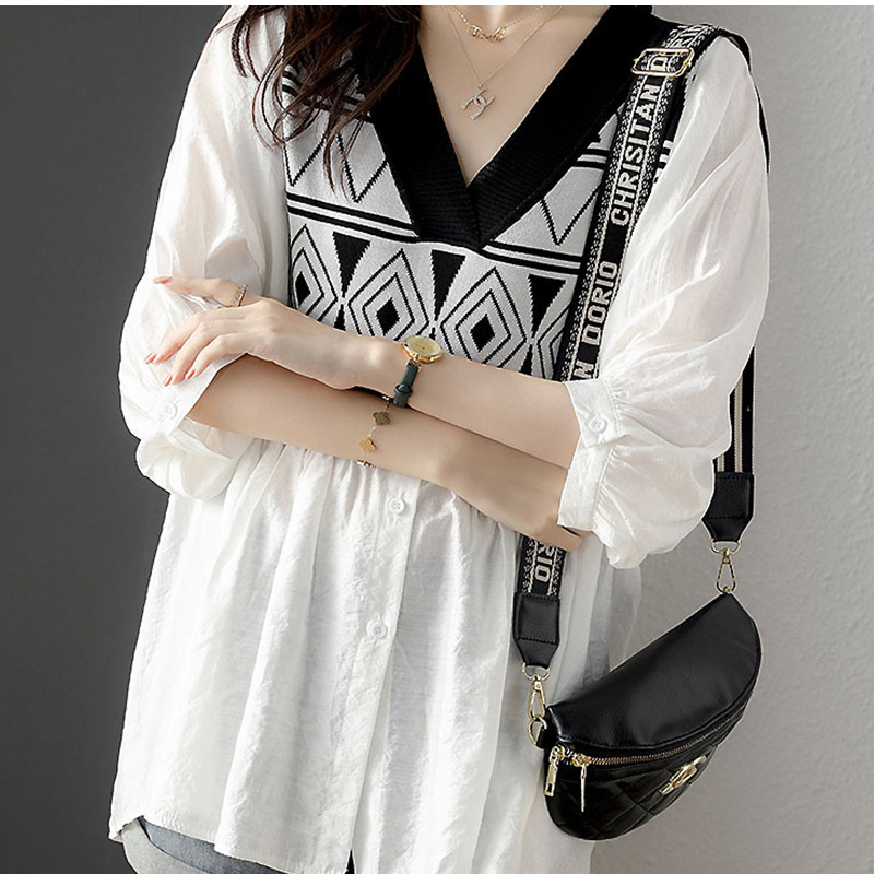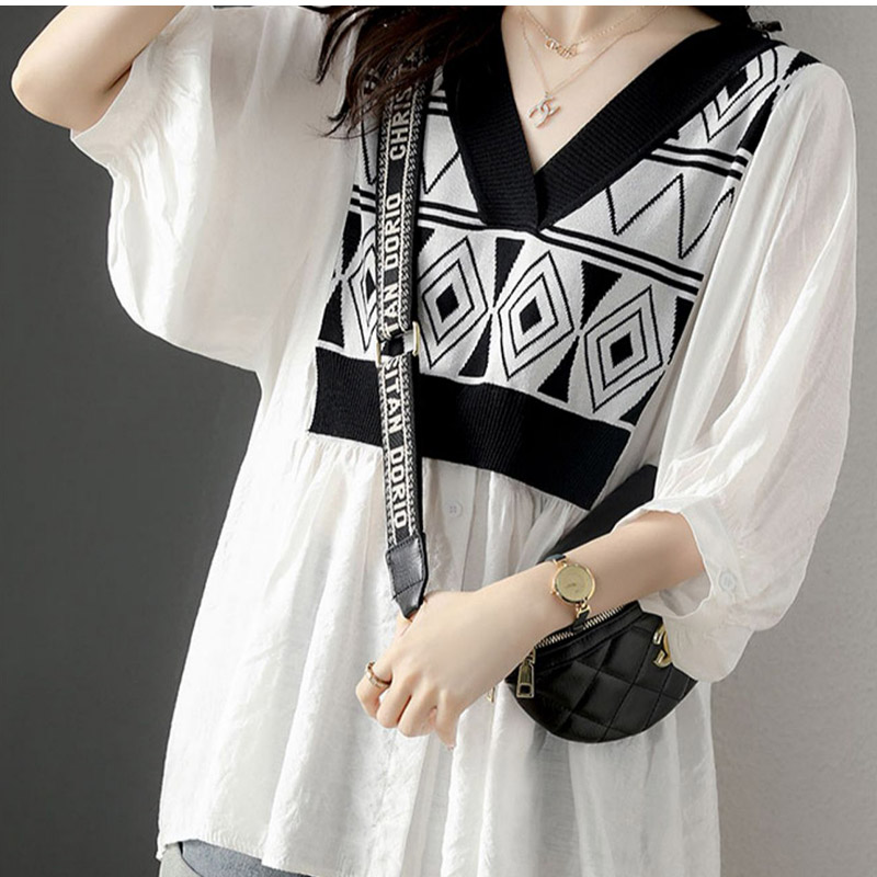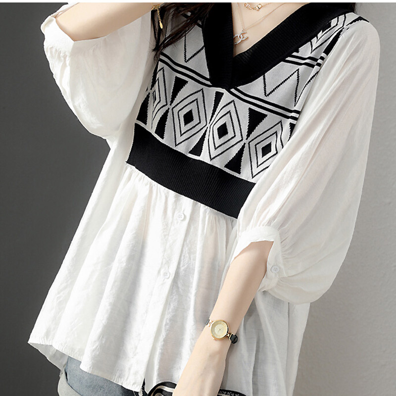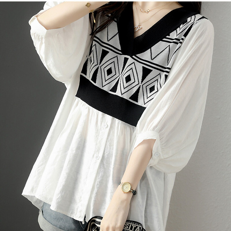 シャツ ブラウス Vネック 菱柄 とろ