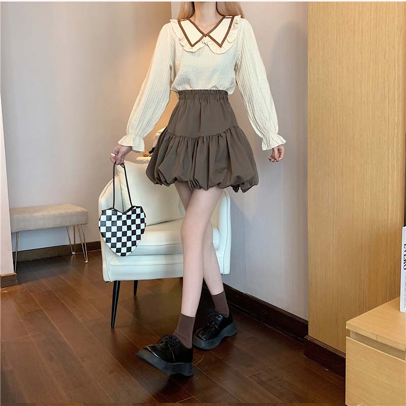 シフォンブラウス シアーブラウス ボリューム袖