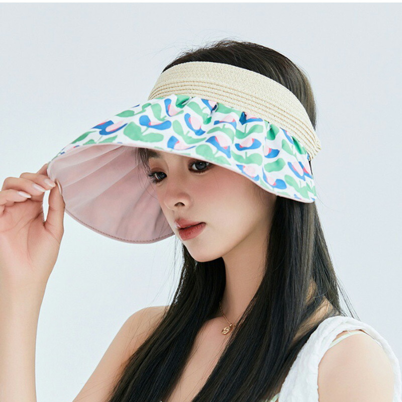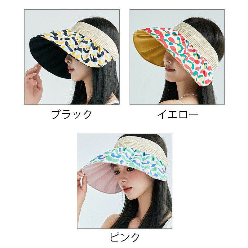 レディース 麦わら帽子 サンバイザー