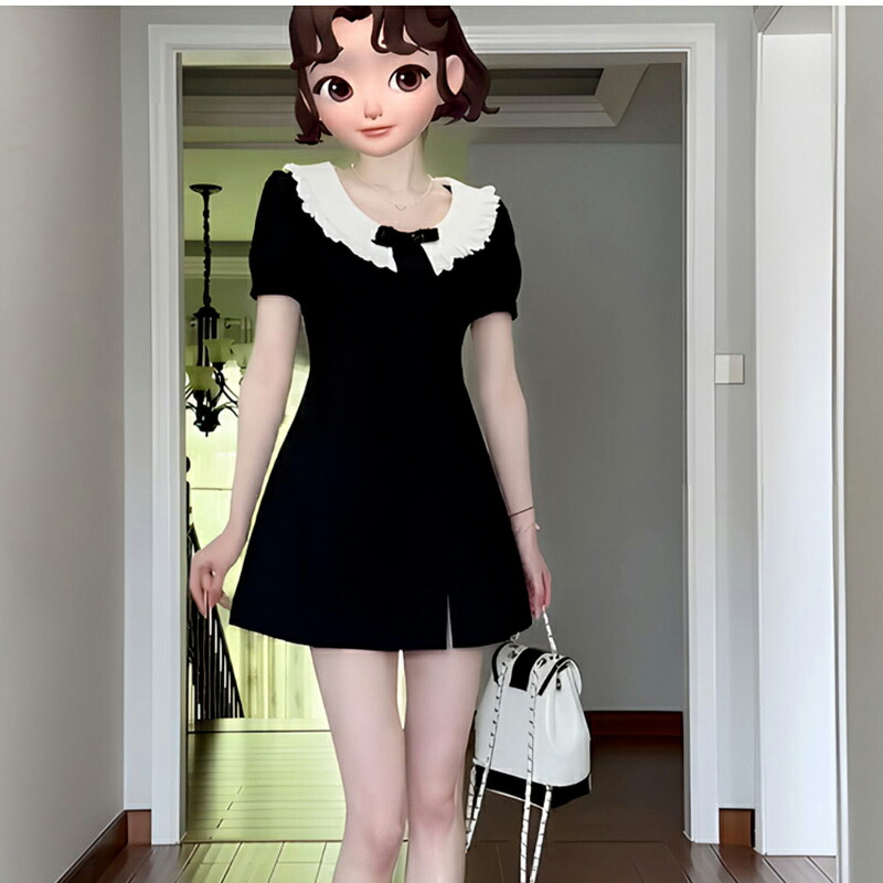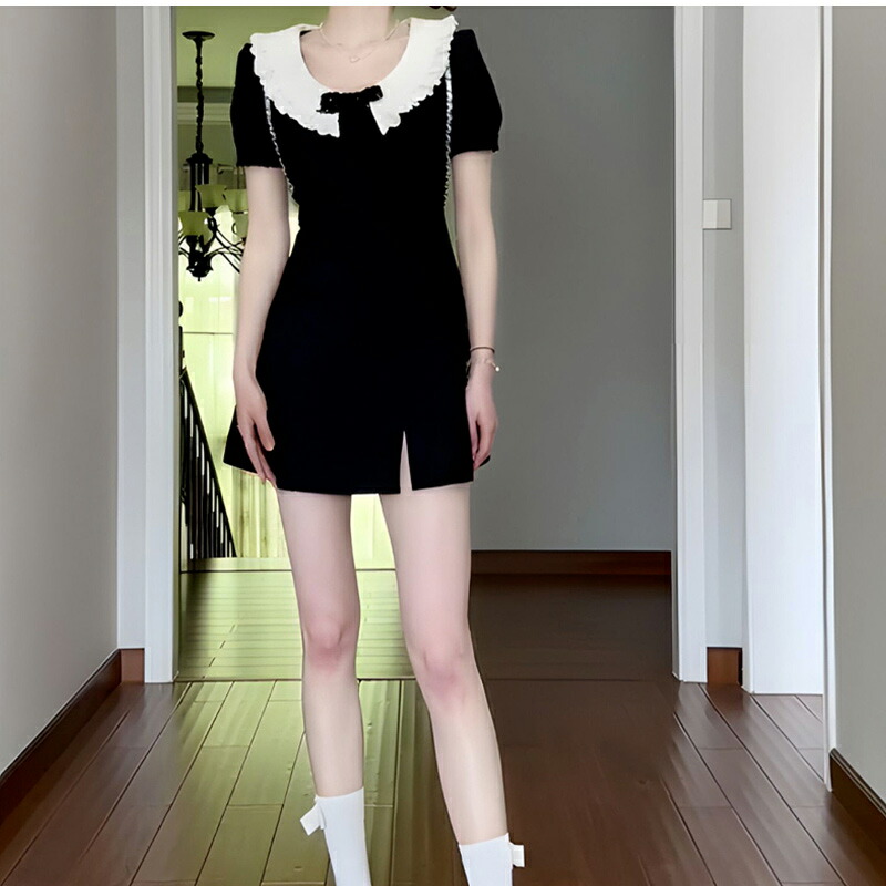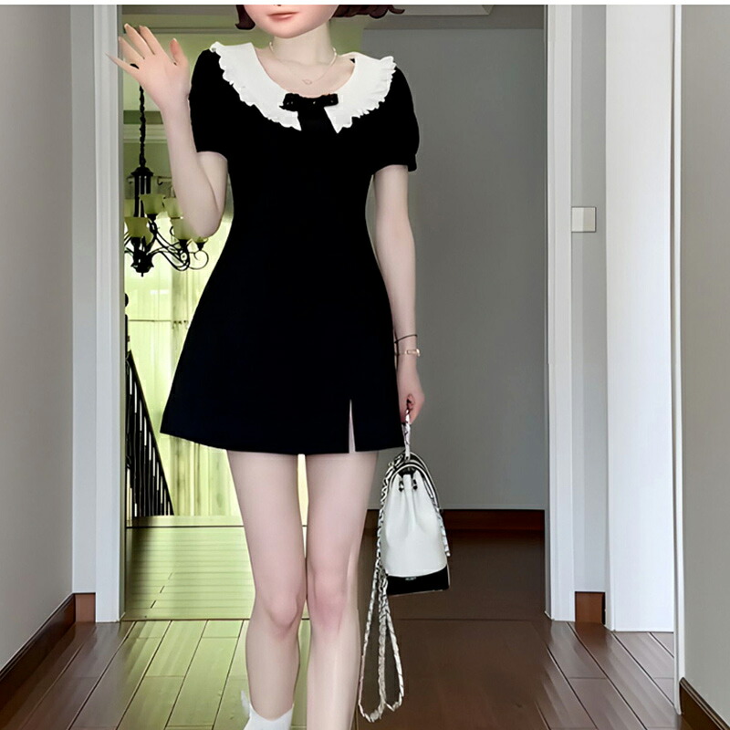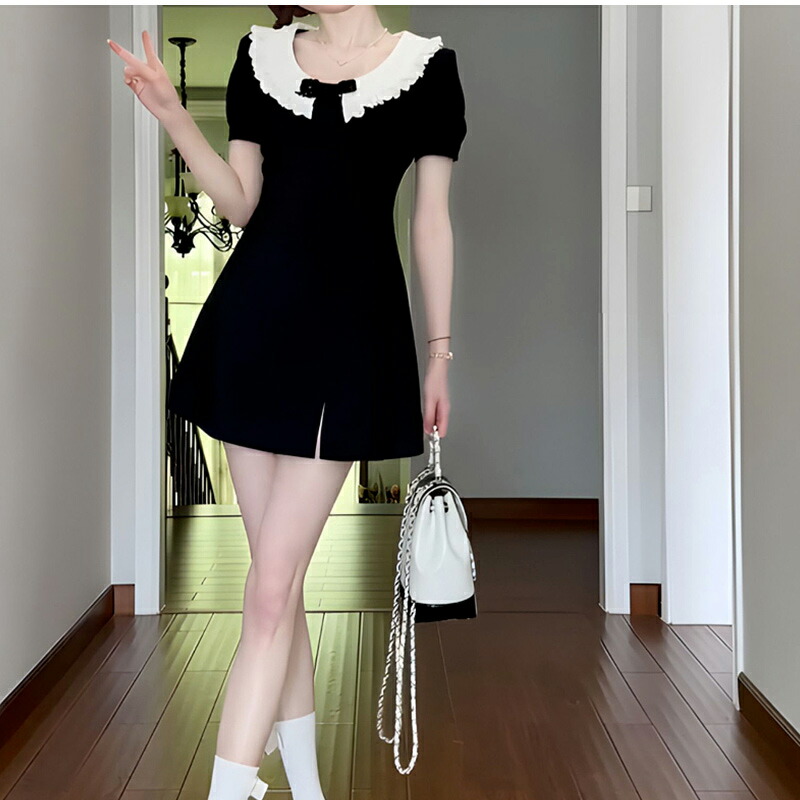 レディースワンピース 着痩せ 半袖 丸