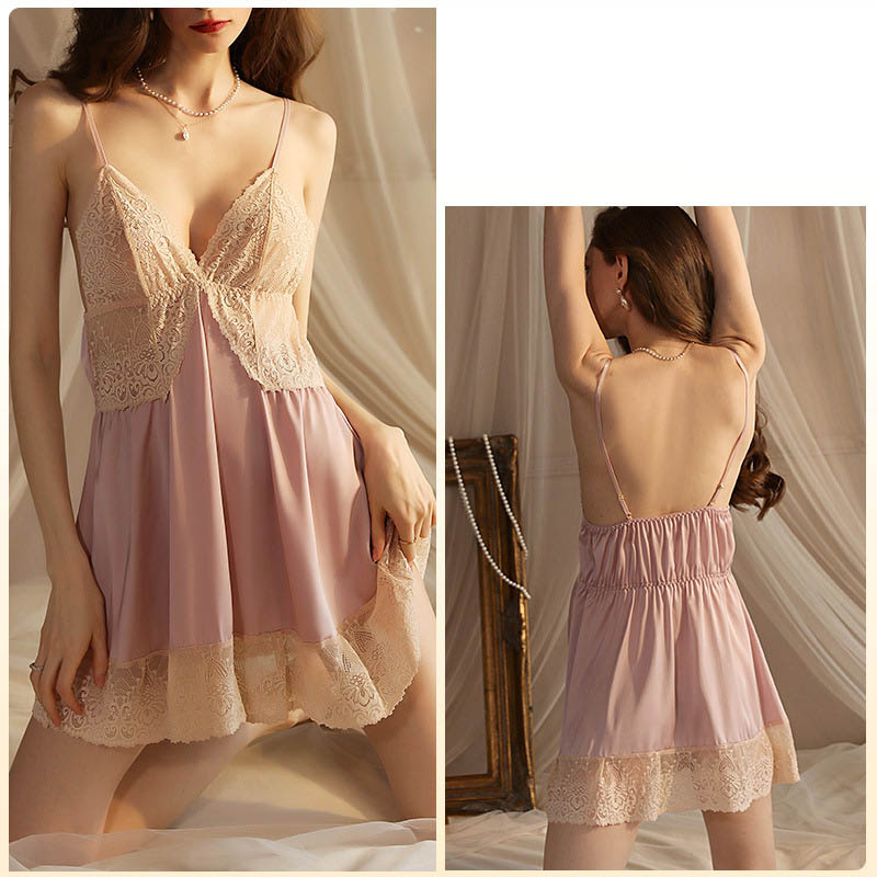 セクシー ランジェリー 深v スリット ベビードール サテン スリップ キャミソール レース ベビードール セクシー