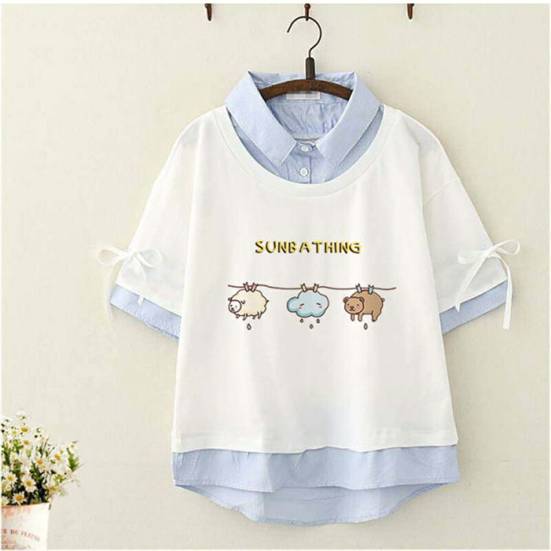 シアースリーブ ドッキングシャツ ボウタイシャツブラウス