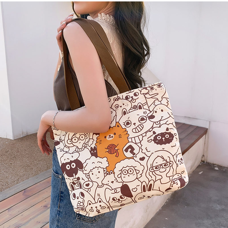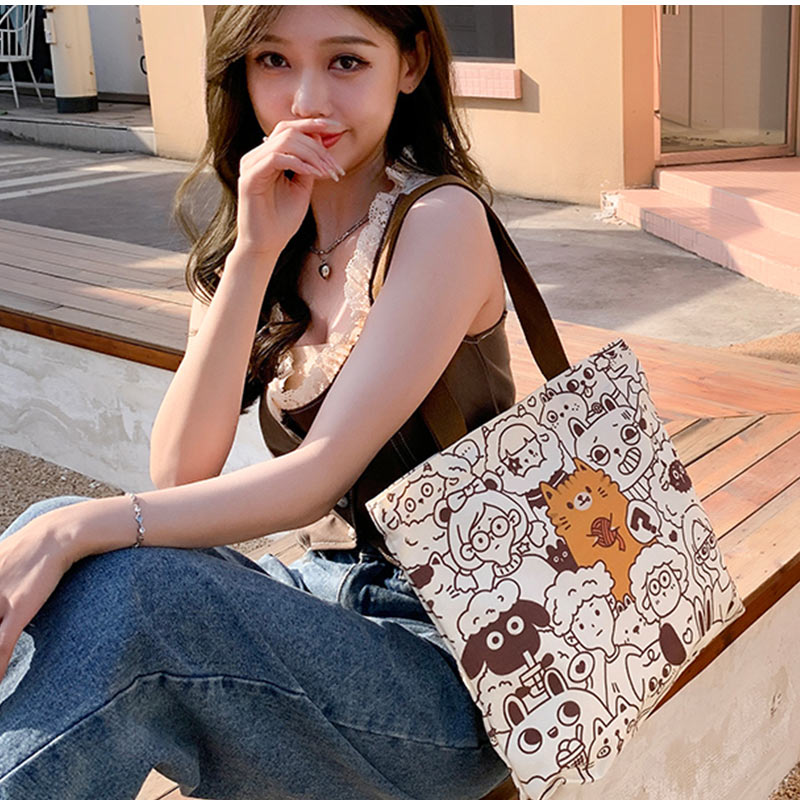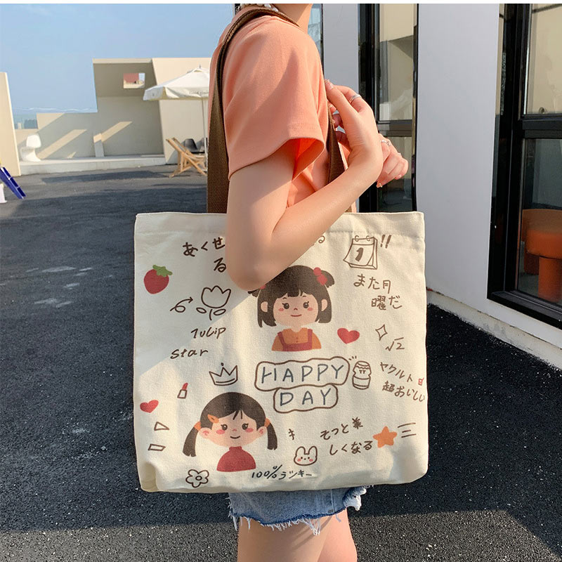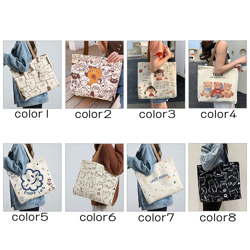 トートバッグ 両面 綿 大容量 4色選