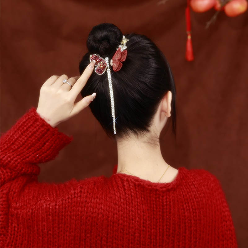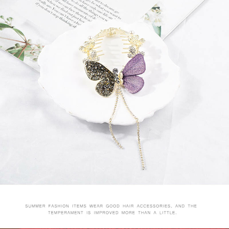 へアクリップ 花 蝶 ラインストーン