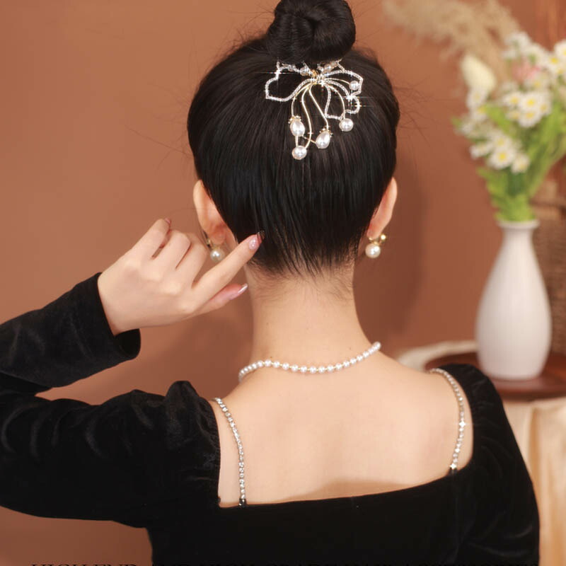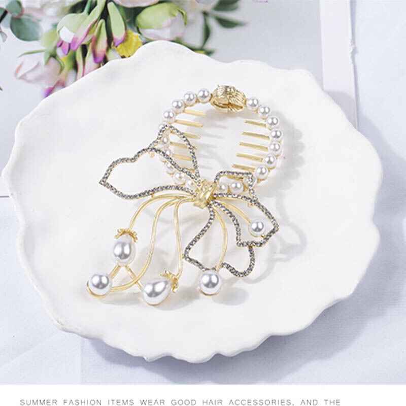へアクリップ 蝶結び ラインストーン