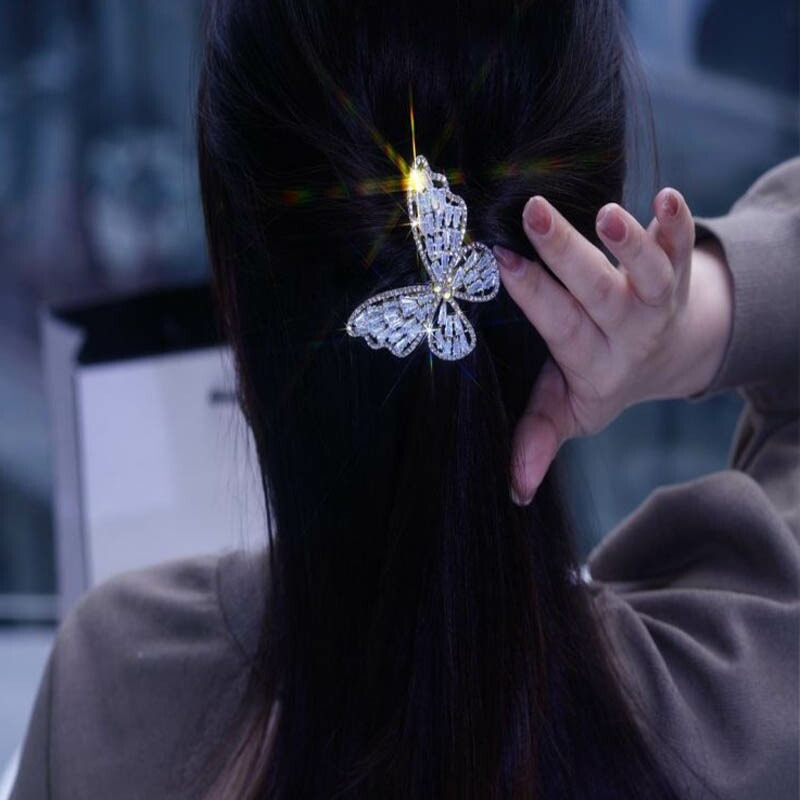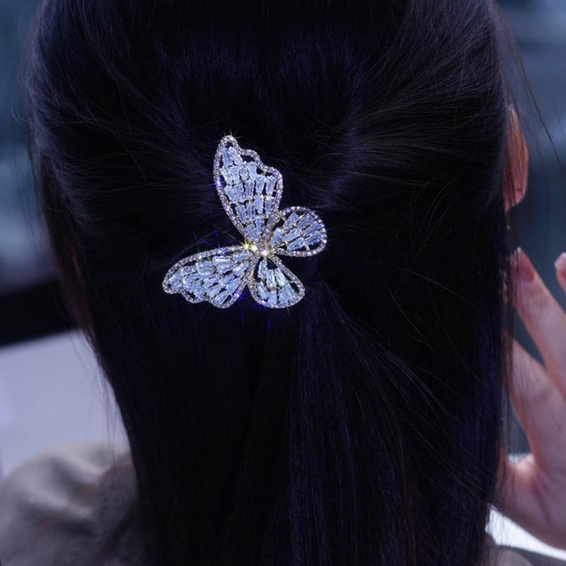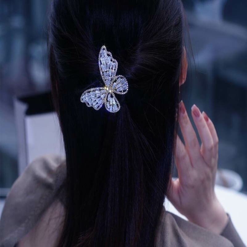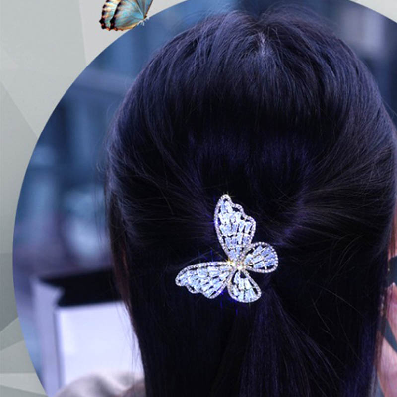 へアクリップ 蝶 ラインストーン 高品