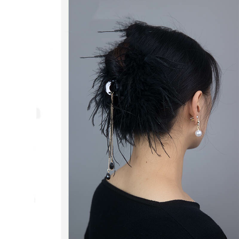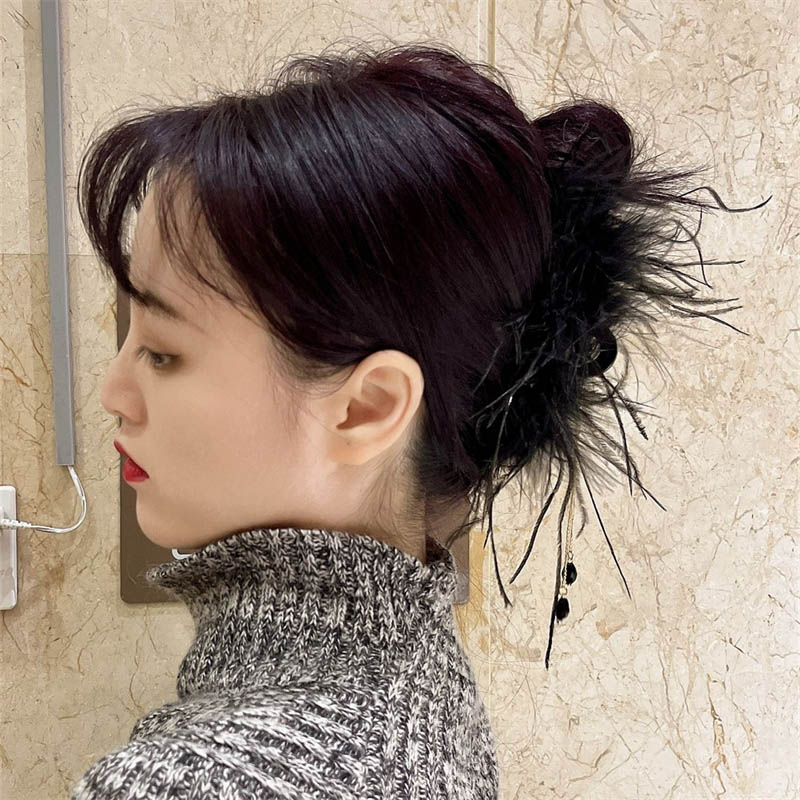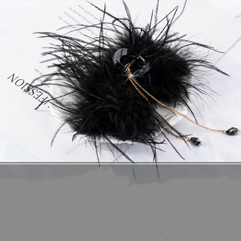 へアクリップ 大きめ 羽 ブラック バ