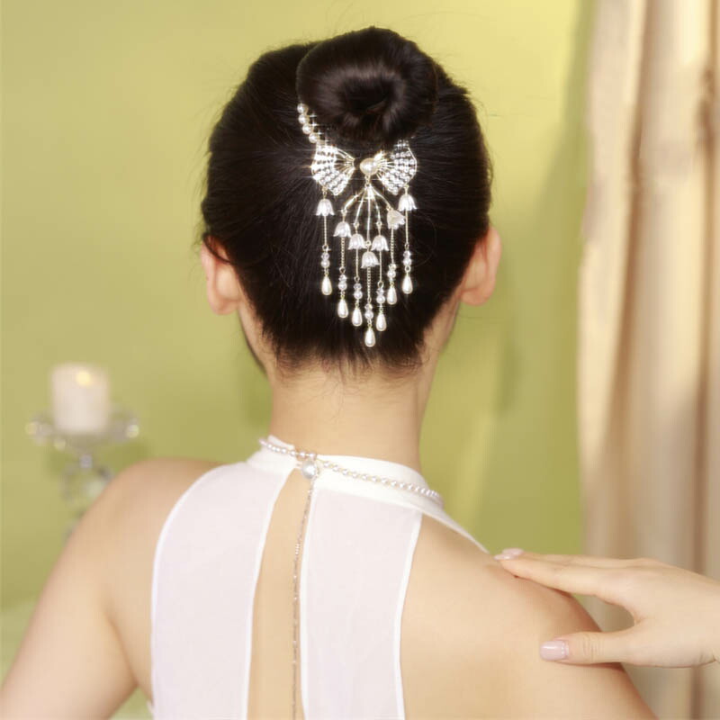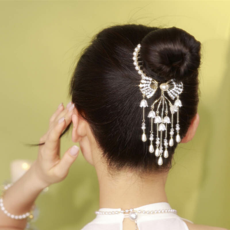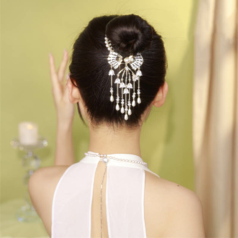 へアクリップ 大きめ 鈴蘭 ラインスト
