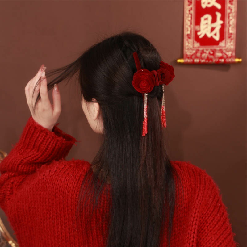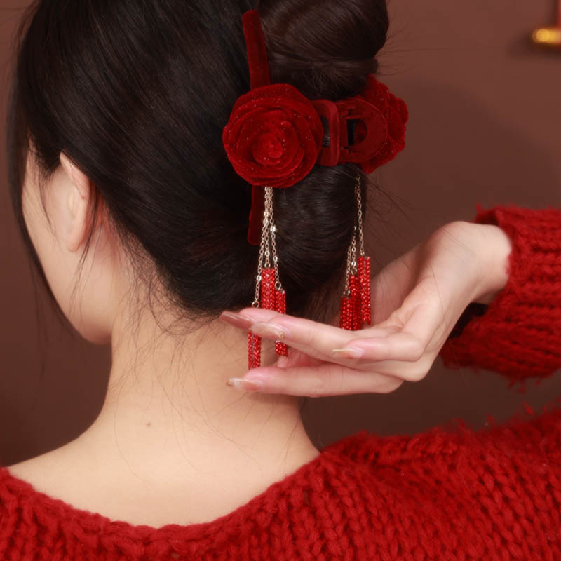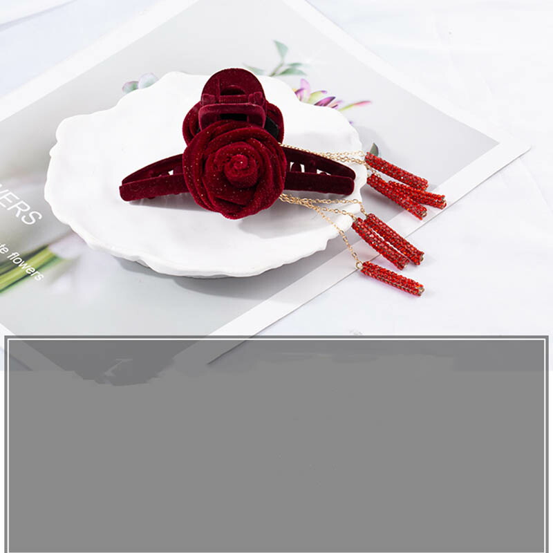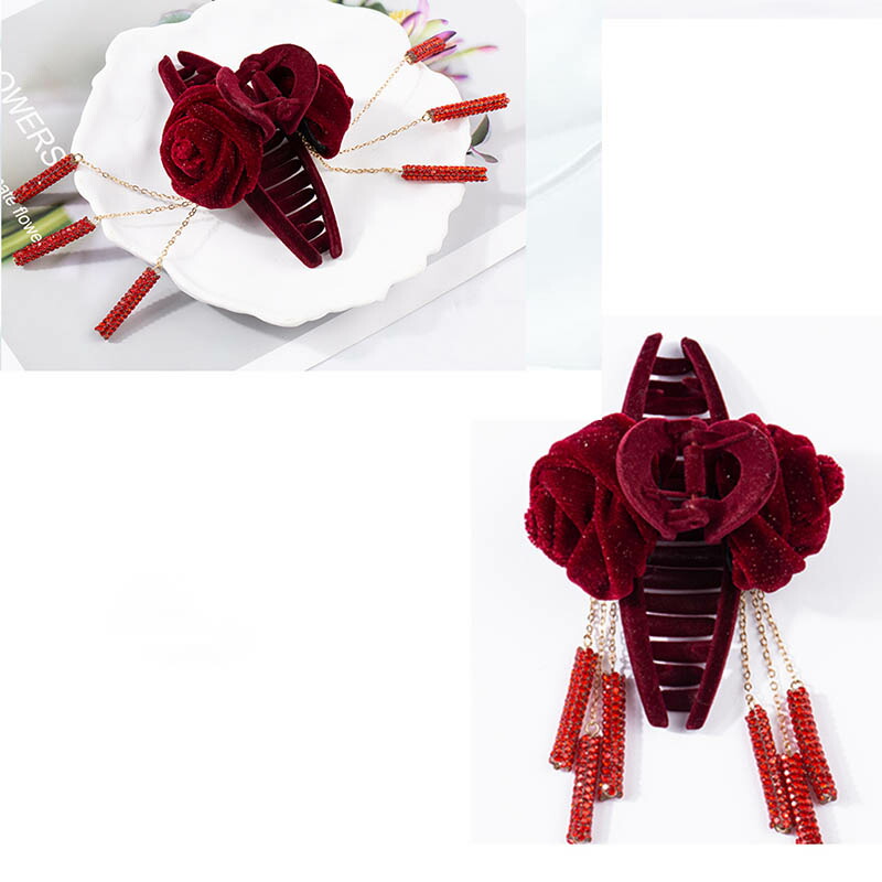 へアクリップ 大きめ ベルベット 薔薇