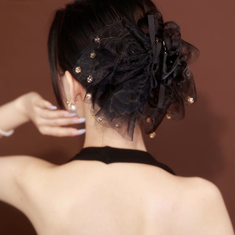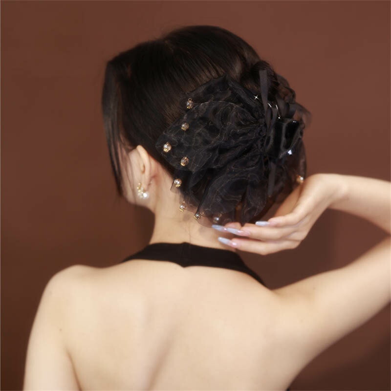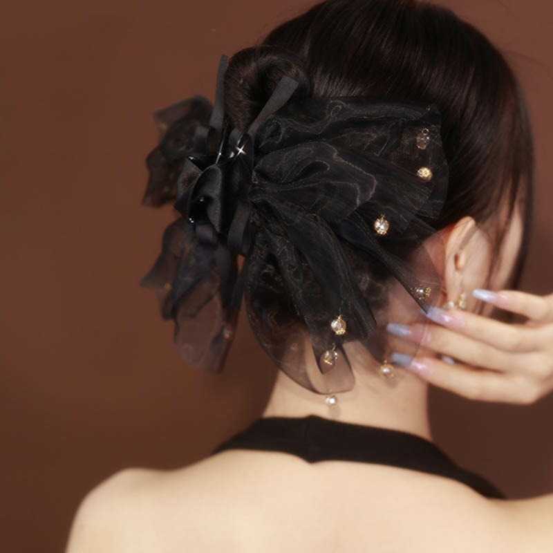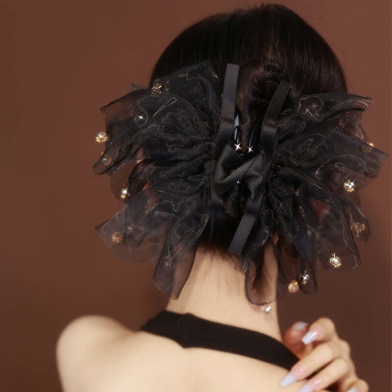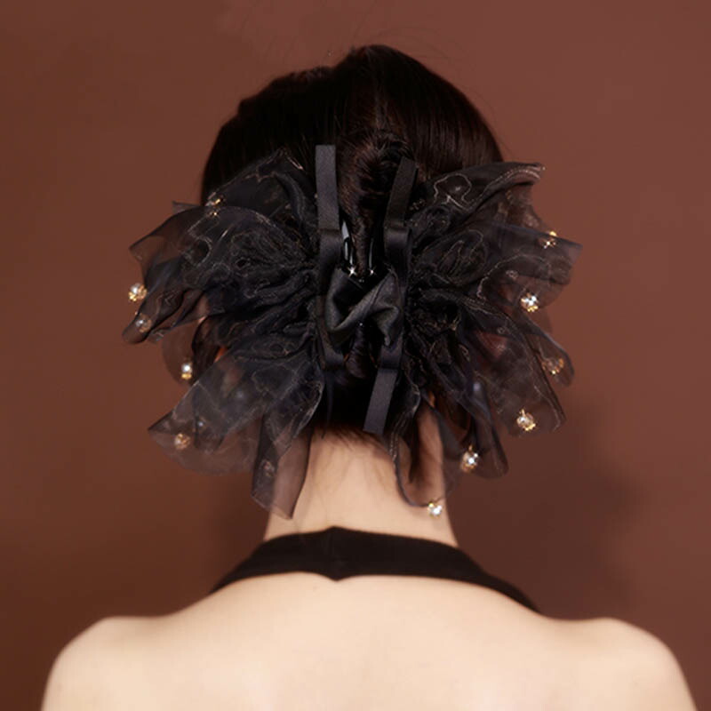 へアクリップ 大きめ シフォン ブラッ