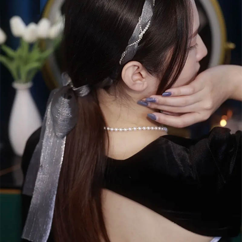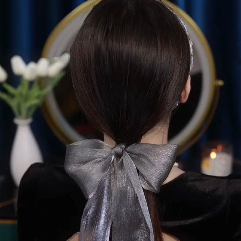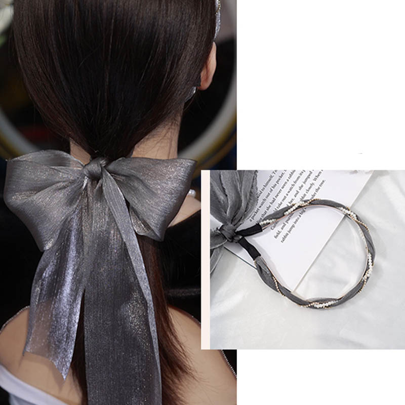 カチューシャ蝶結び グレー 高品質 髪
