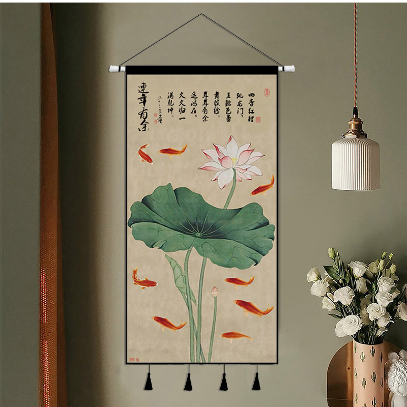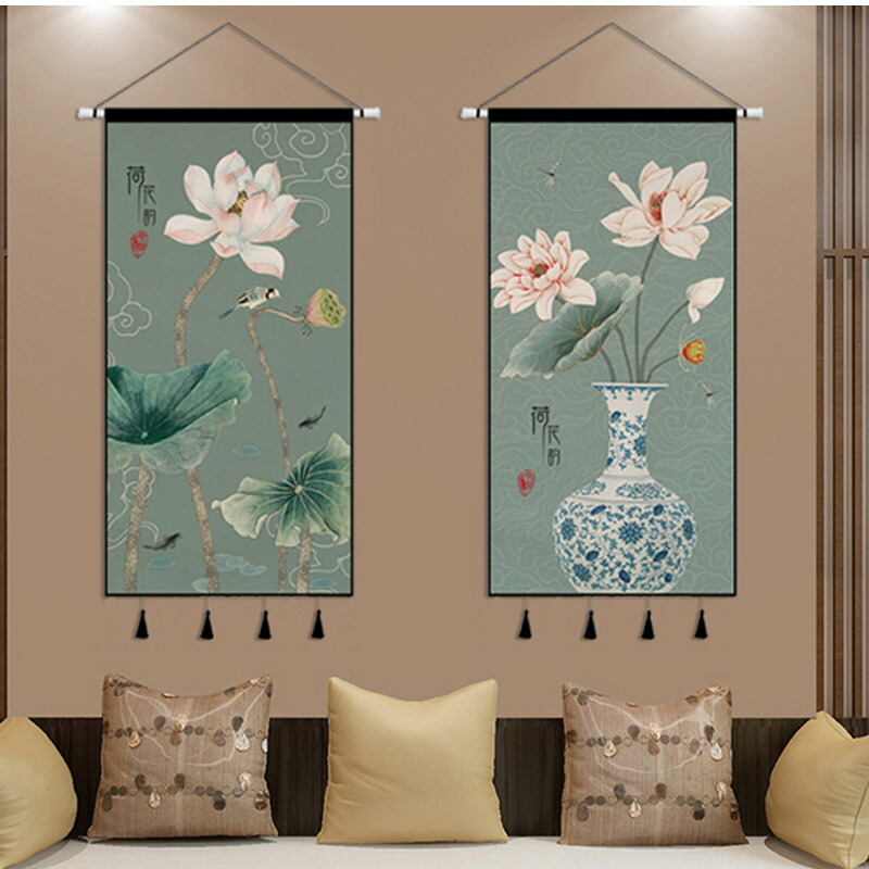 タペストリー ウォールデコレーション 中国画 蓮の花 背景布 壁布 壁掛けインテリア 寝具 収納 壁紙 装飾フィルム タペストリー