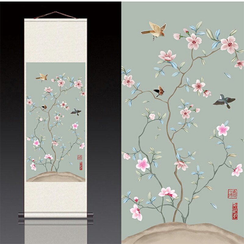 絹本 掛け軸 シルクスクロールペインテ