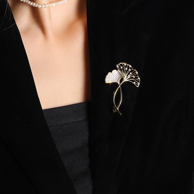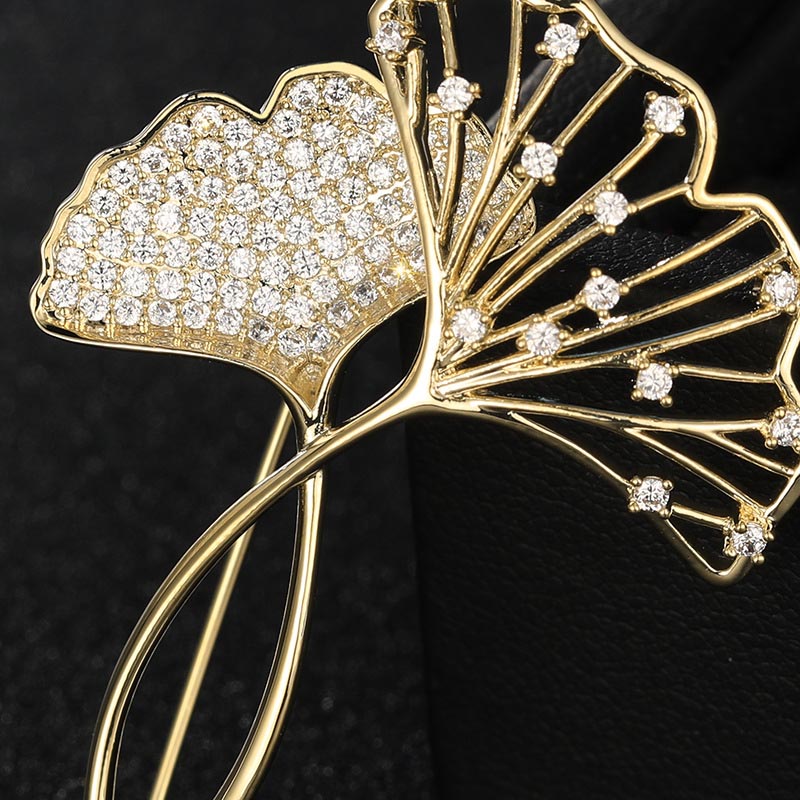 ブローチ イチョウの葉ラインストーンお