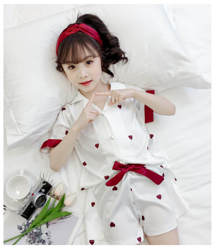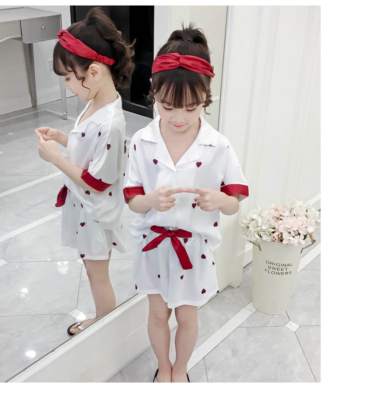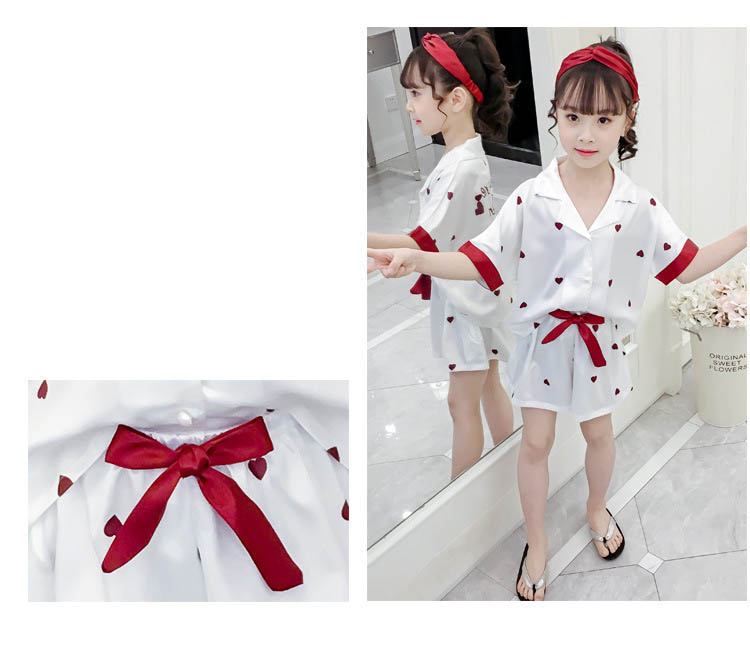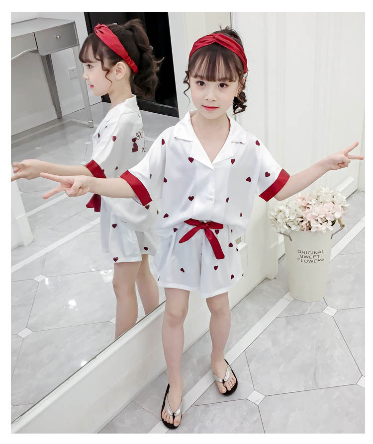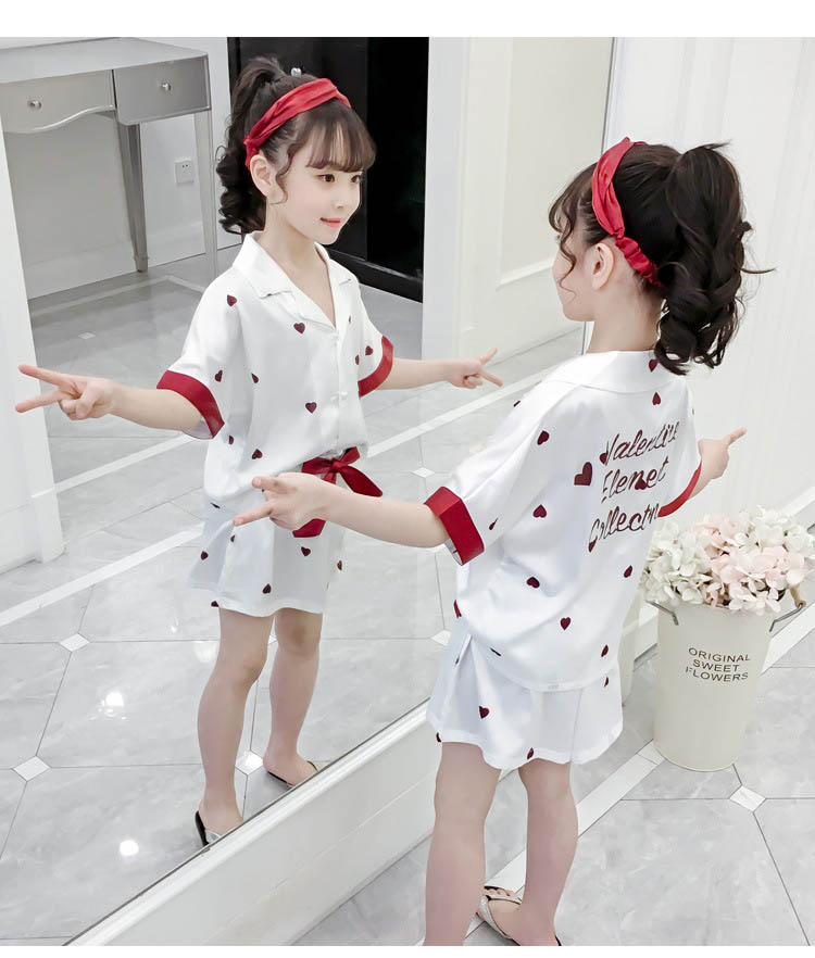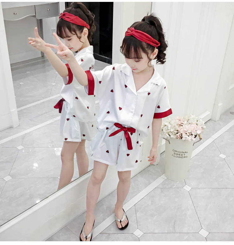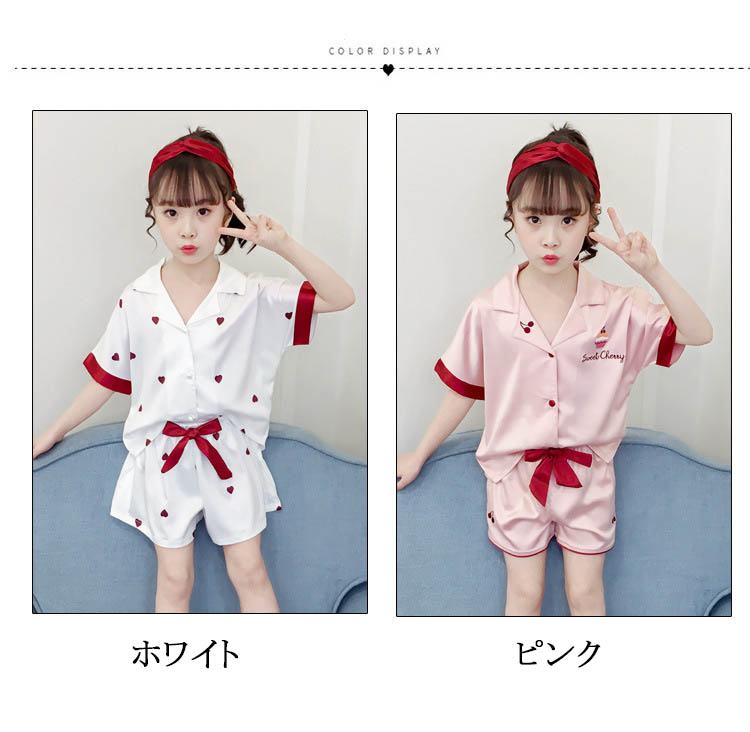 ルームウェア パジャマ 女の子 夏 綿 全2色 子供服 110 120 130 140 150 160cm ハート柄 上下セット キッズ 2点セットアップ 半袖 ズボン ショートパンツ 短パン コットン 子供 ジュニア ナイトウェア 部屋着 シンプル 可愛い おしゃれ