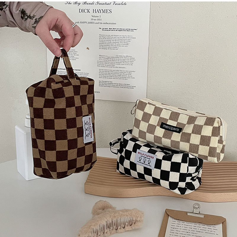 ポーチ チェック柄 化粧ポーチ 大容量