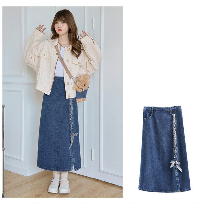 デニムパンツ ビジュー付き