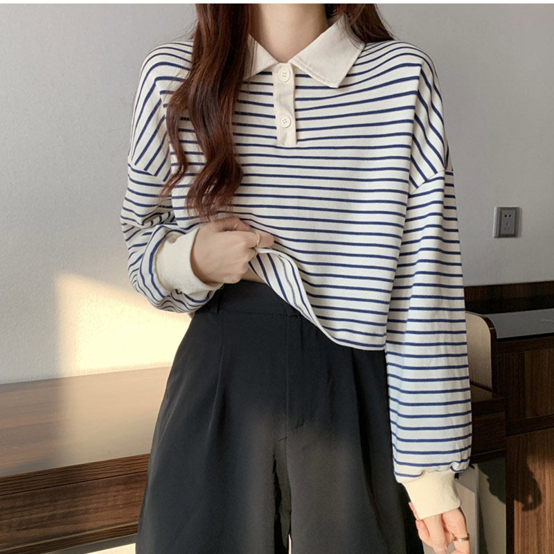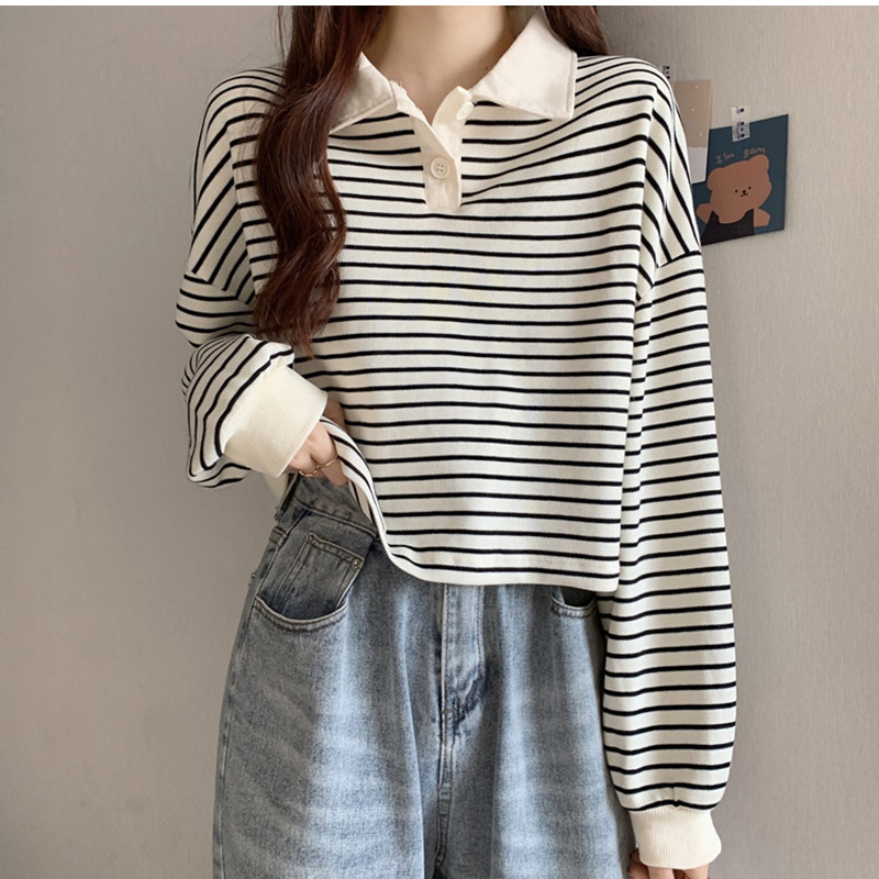 POLOシャツ 長袖 ショート丈 レデ