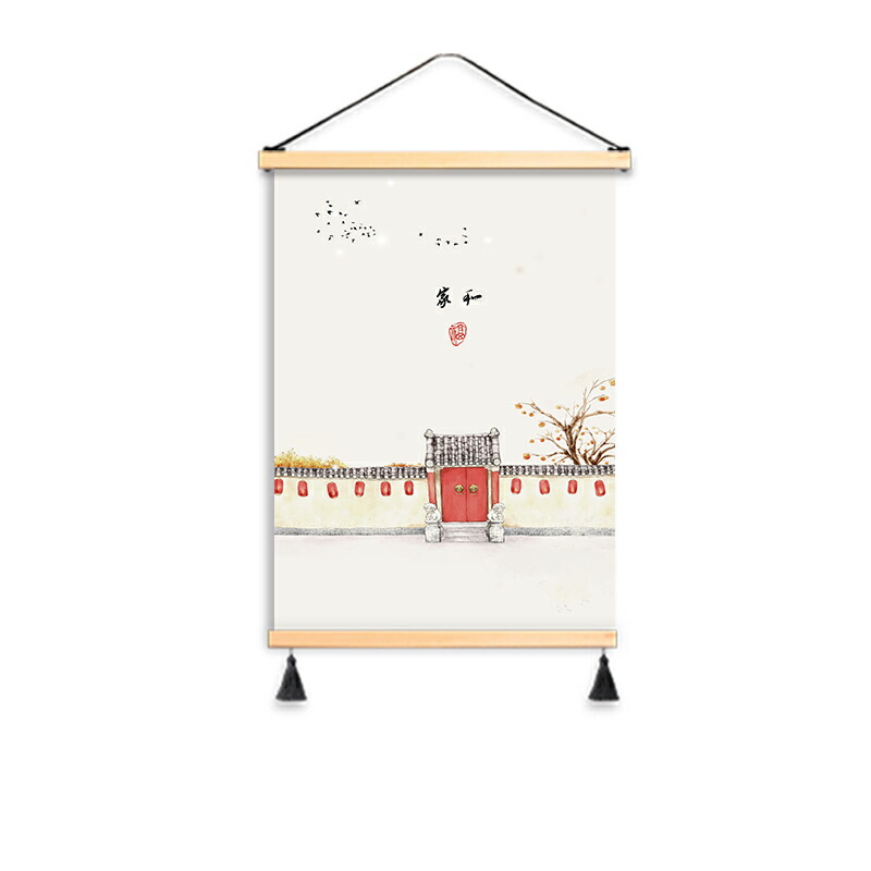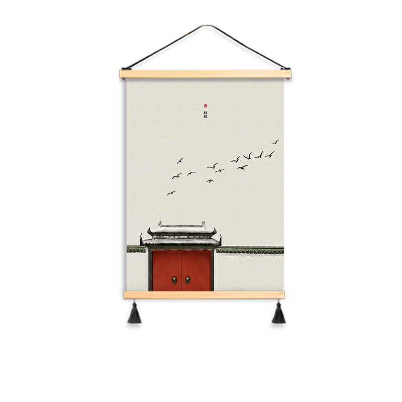 タペストリー ウォールデコレーション ペインティング 中国風 フリンジ付き 背景布 壁掛け 壁飾り 目隠し 飾り用 装飾画 インテリア おしゃれ