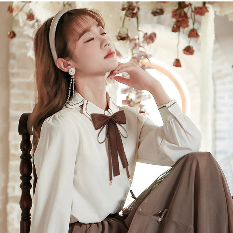 シアースリーブ ドッキングシャツ ボウタイシャツブラウス