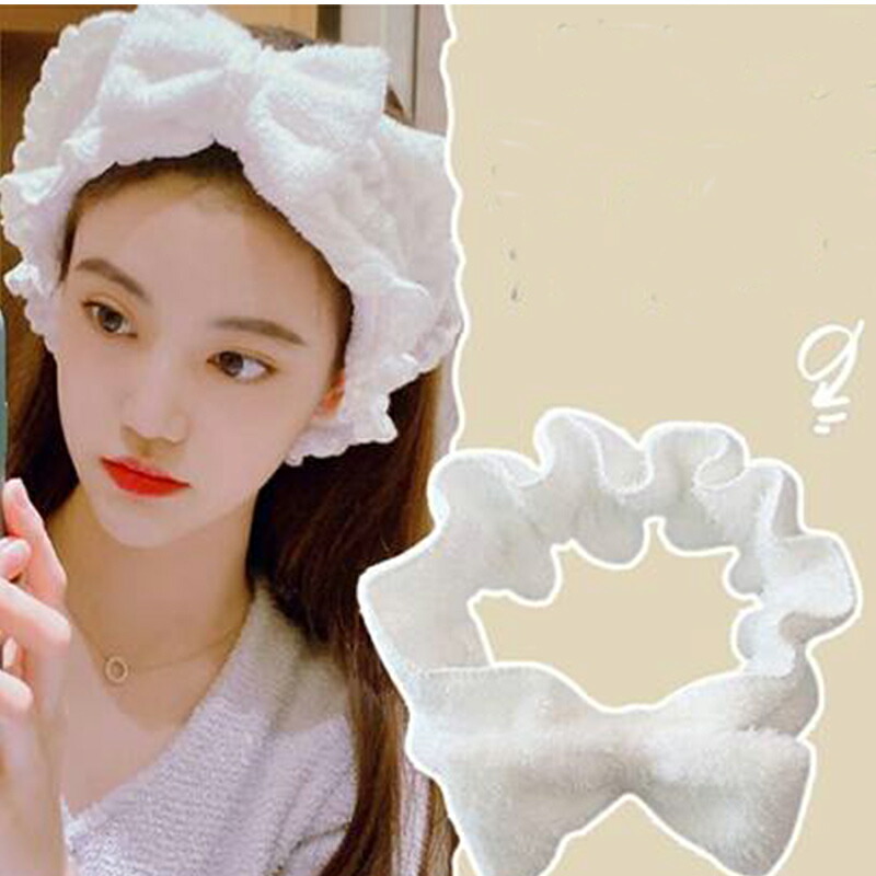 リボン付き洗顔用ヘアターバン ふんわり