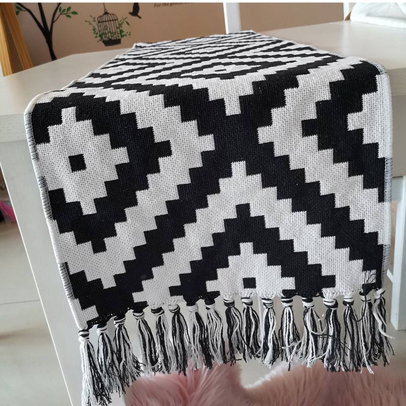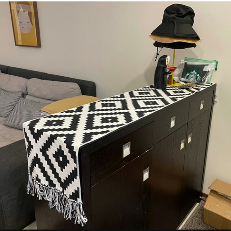 テーブルランナー 北欧 ブラックホワイ