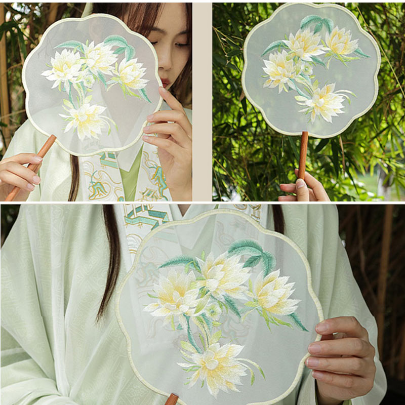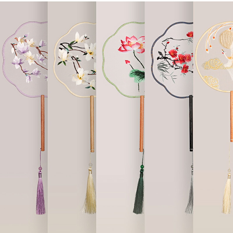 団扇 うちわ 中国風 扇子 二面刺繍贈