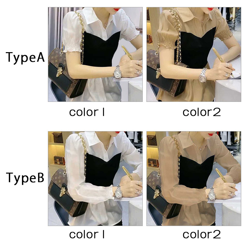 シアースリーブ ドッキングシャツ ボウタイシャツブラウス