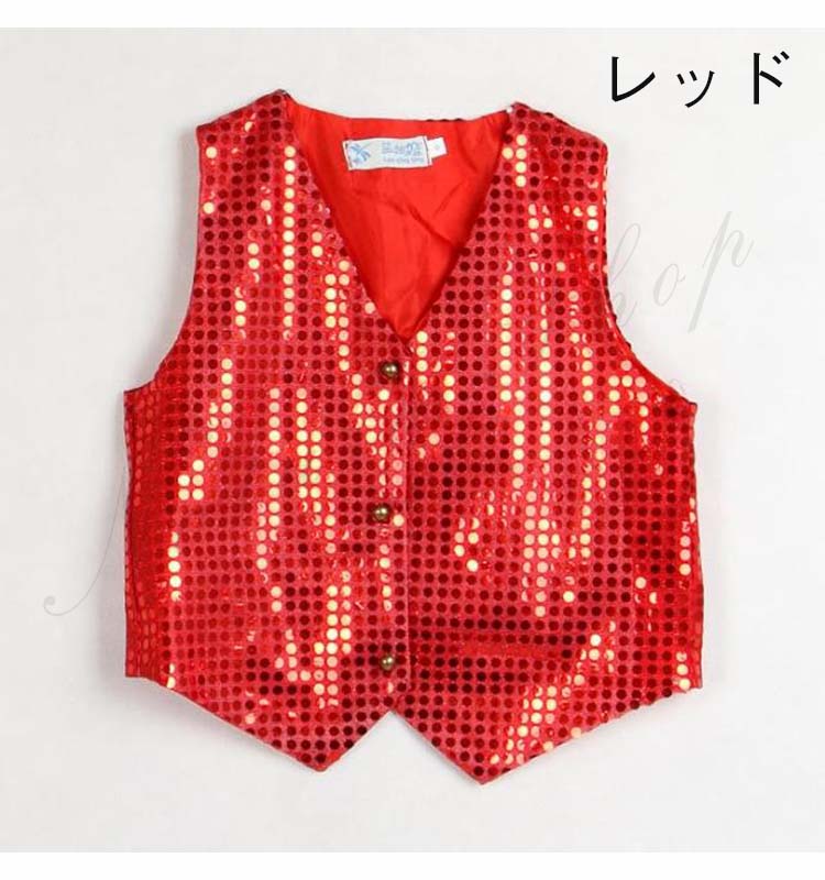 スパンコール ベスト ダンス衣装 キッズヒップホップ 衣装 ステージ ジャズ服 ダンス コスチューム スパンコールベスト 男の子 ヒップホップ 衣装