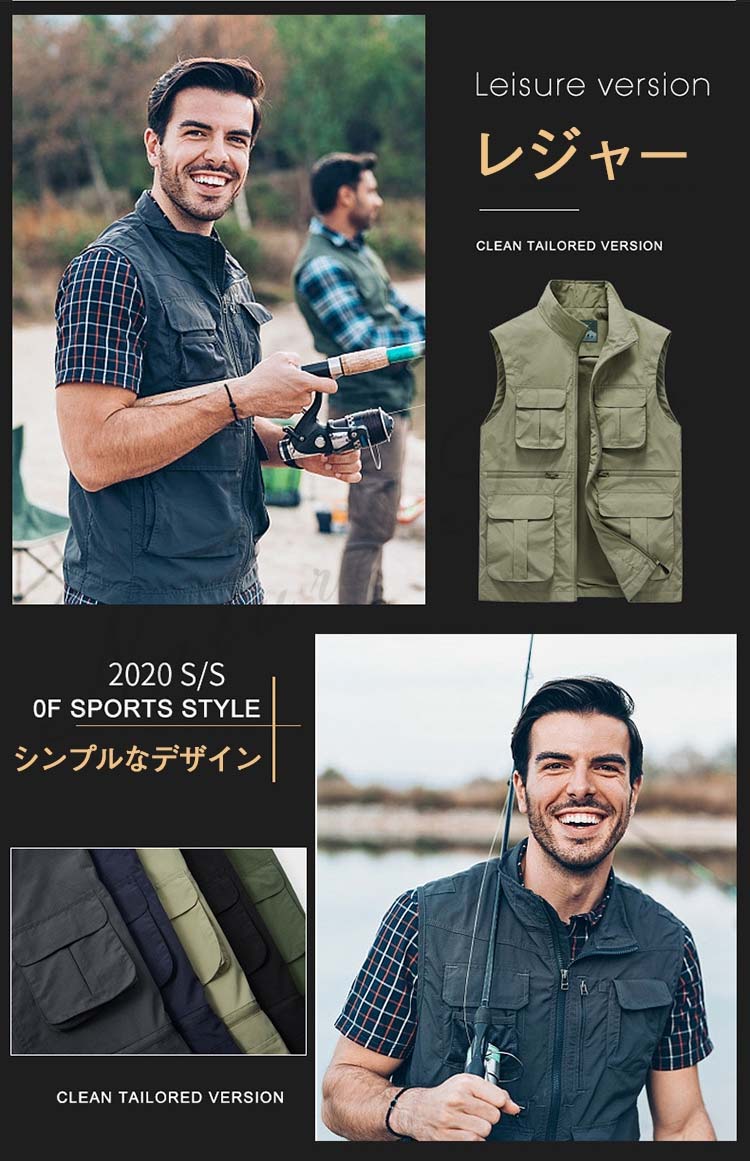 メンズ ベスト 春夏 アウトドア メンズベスト お釣りベスト 夏用 通気性 速乾ベスト フィッシング 撮影用 作業服 多機能ベスト 大きいサイズ 登山用 マルチポケット