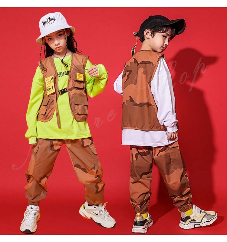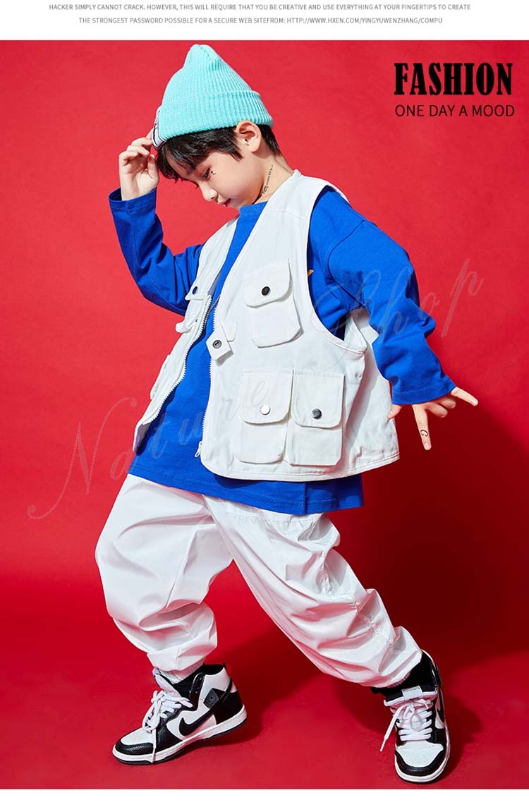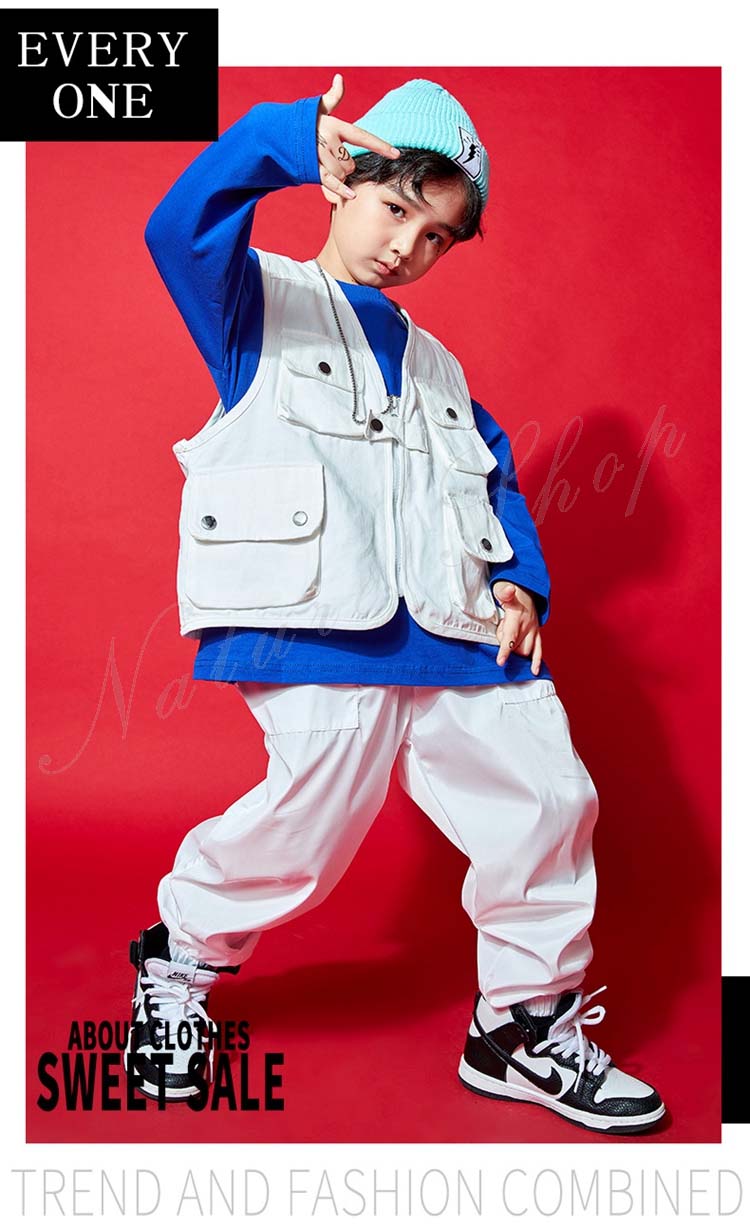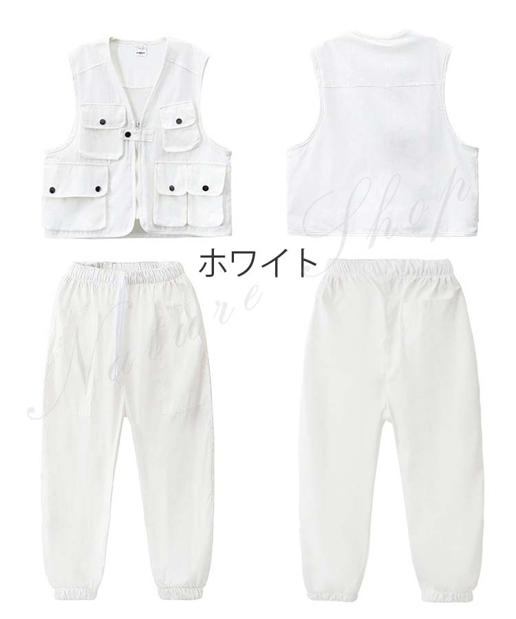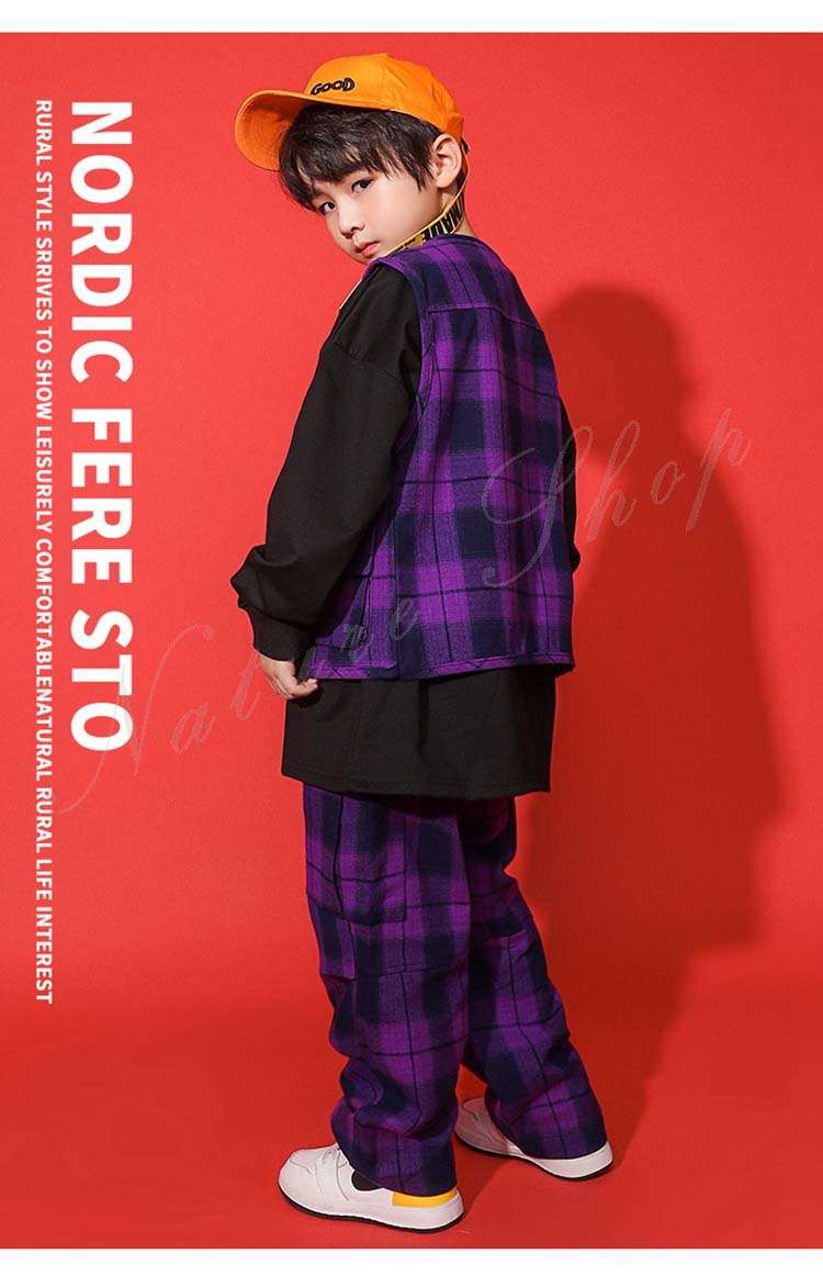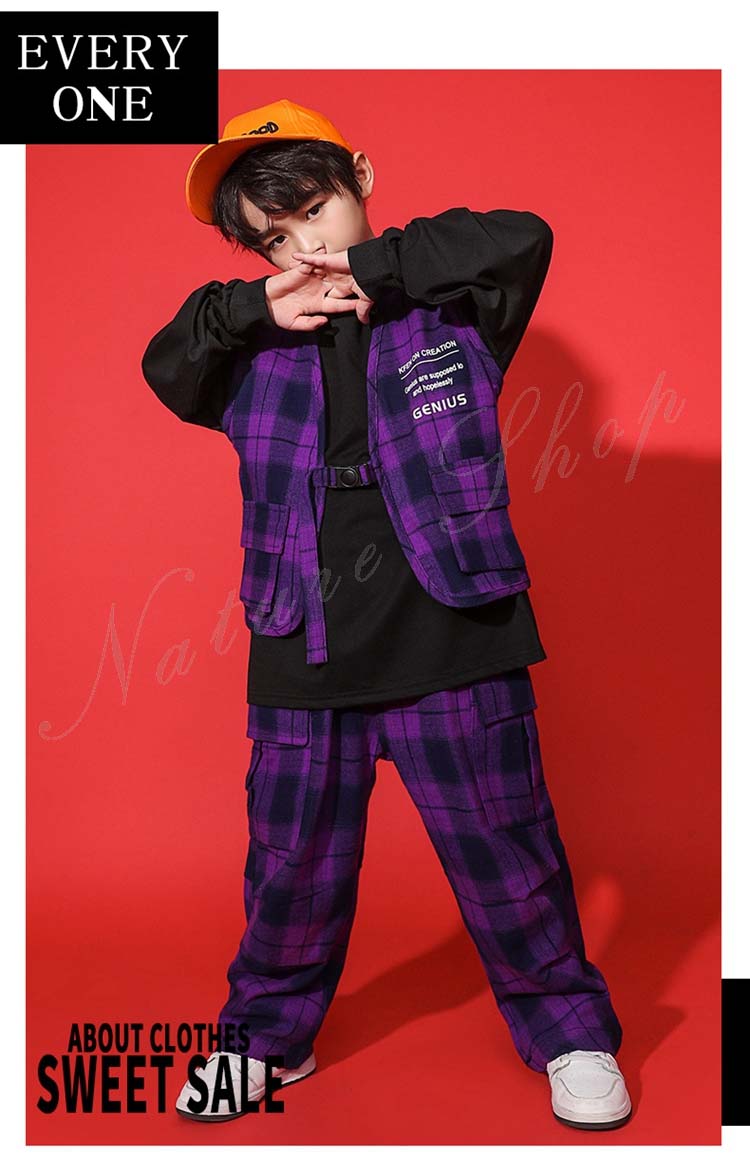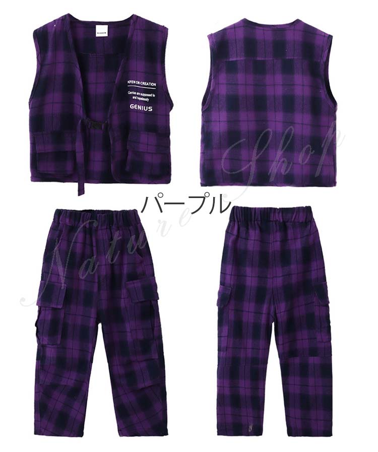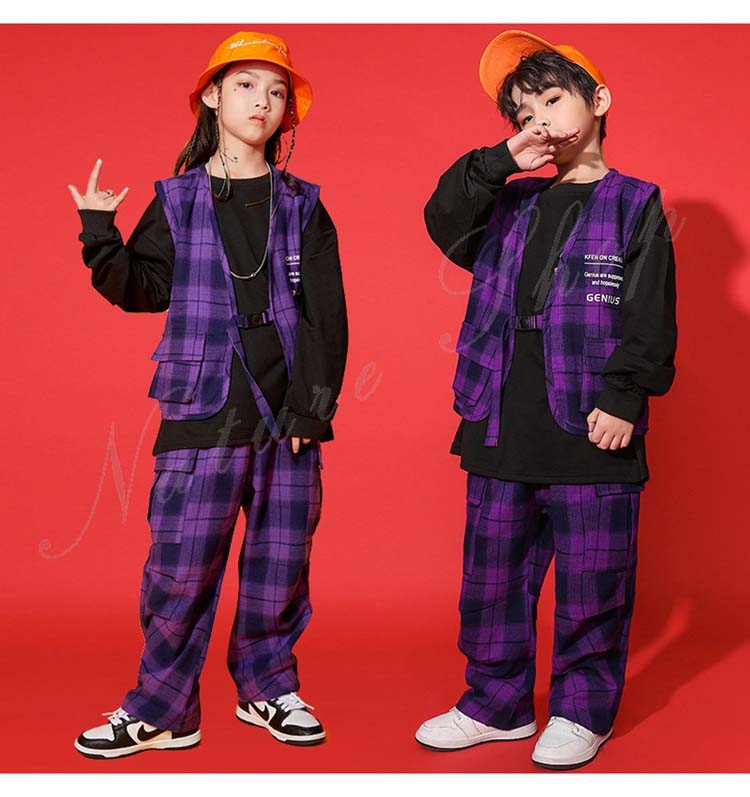 ダンス衣装トップス パンツ ベスト ロング丈ズボン 3colors 白 無地 迷彩 パープル チェック柄 ヒップホップ衣装 キッズ メンズ レディース かっこいい 普段着 ストリート