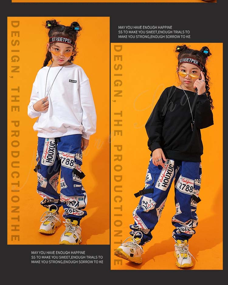 ヒップホップ 衣装 ファッション 長袖 パーカー サルエルパンツ 文字柄 総柄 キッズダンス衣装 ダンス衣装 キッズ ヒップホップ ストリート 日常 普段着 ダンス レッスン