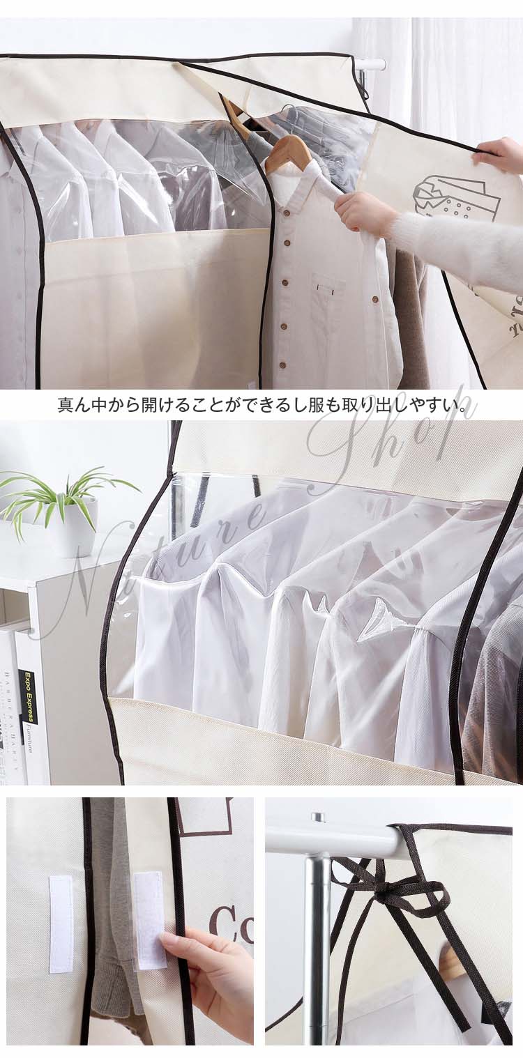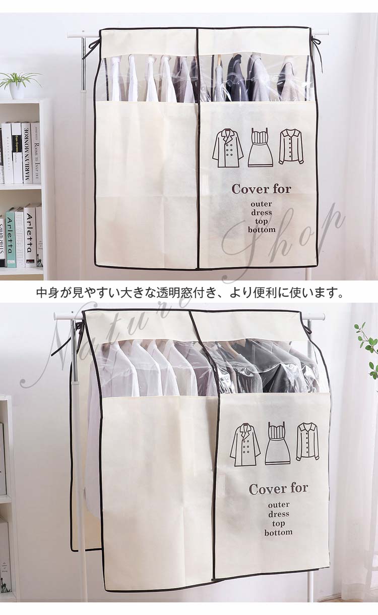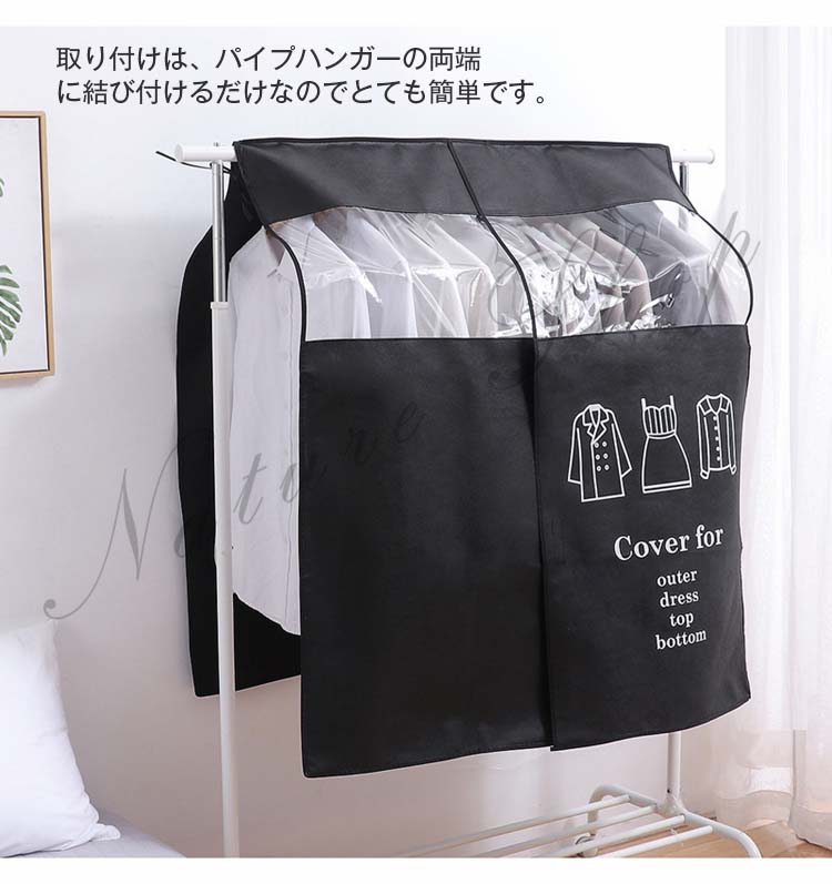 ハンガーラックカバー 汚れ防止 衣類収納カバー シンプル 防塵 通気 通気性 防虫 防湿 防カビ 家ホコリ 透明窓 取付簡単 不織布 中身見える