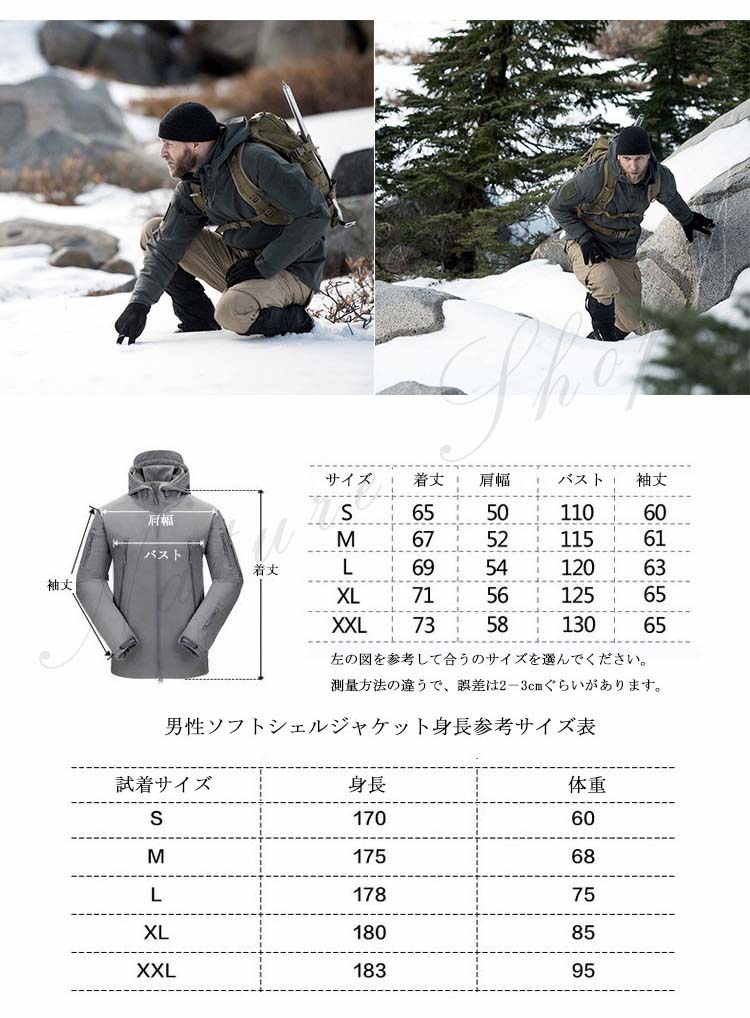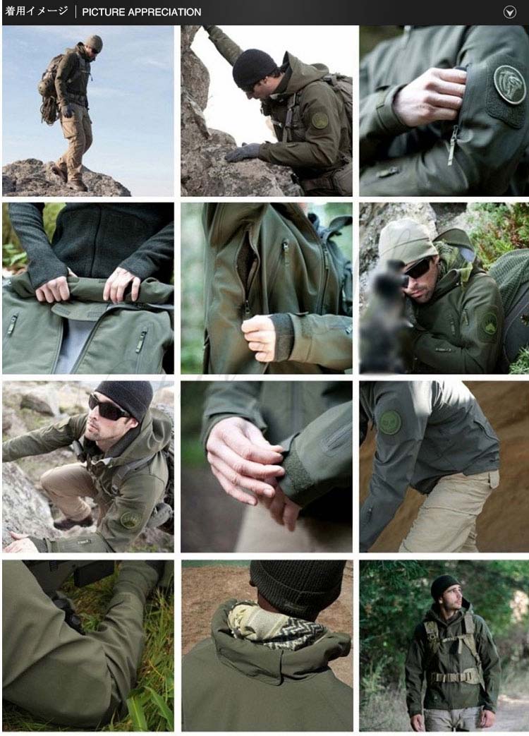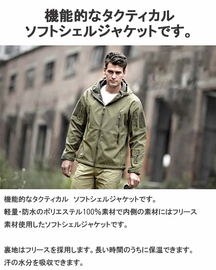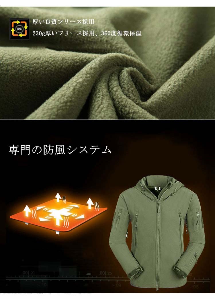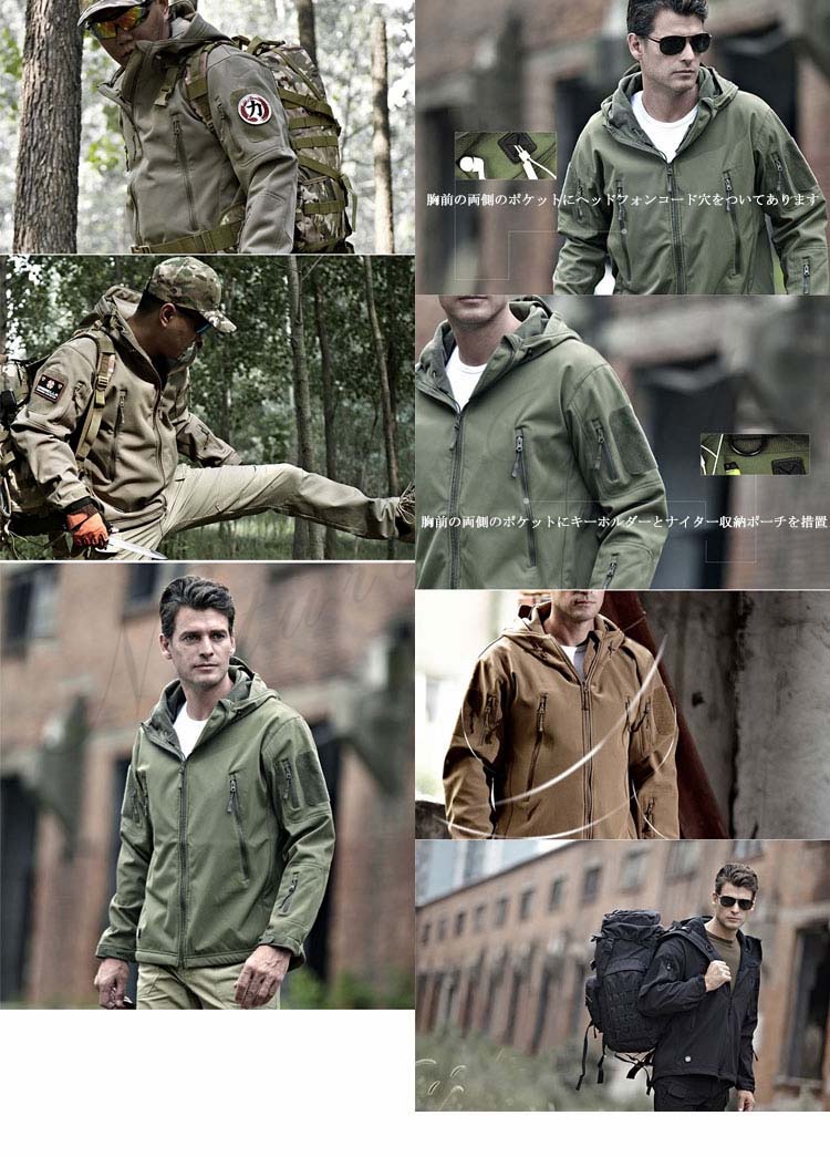 ソフトシェルジャケット アウトドアジャケット ミリタリージャケット サメ革メンズファッション コート ジャケット
