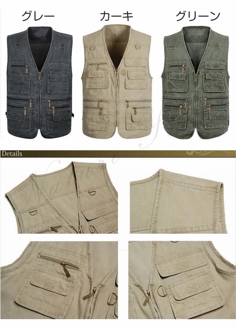 メンズ ベスト 大きいサイズ 春夏 秋 UVカット 釣りベスト 多機能ベスト カメラマンベスト 撮影ベスト タクティカルベスト スポーツ