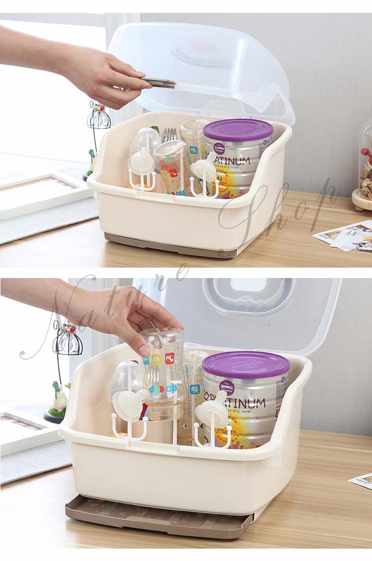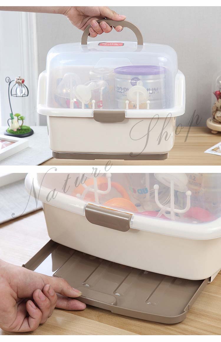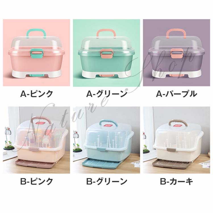 哺乳瓶ラック 乾燥ラック 収納ボックス 哺乳瓶収納 多機能 防塵 防カビ衛生用品 水切り 保管ケース 大容量 ハンドル付き 持ち運び便利 哺乳瓶ケース 収納ケース 哺乳瓶キャリー