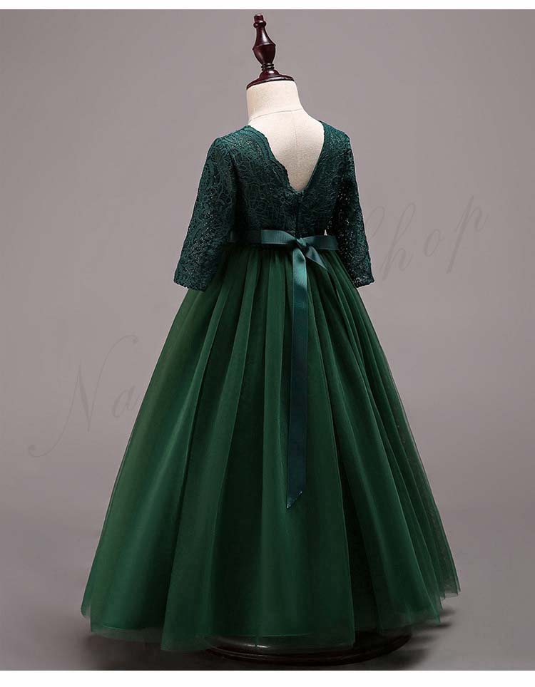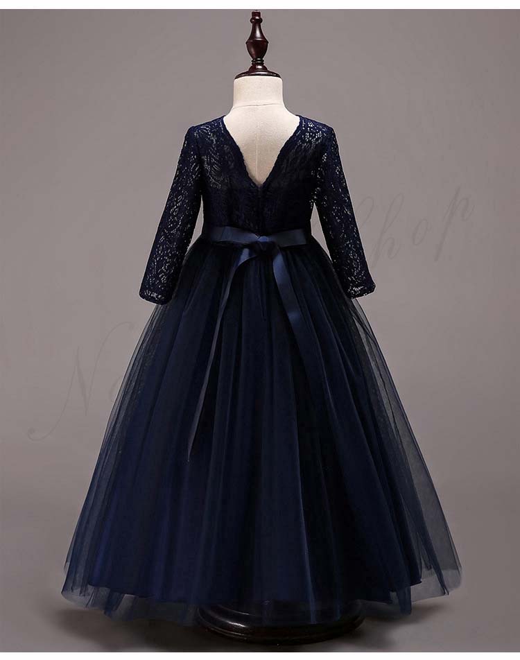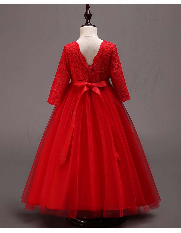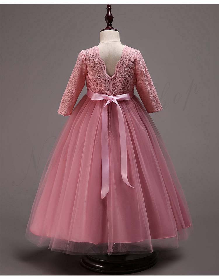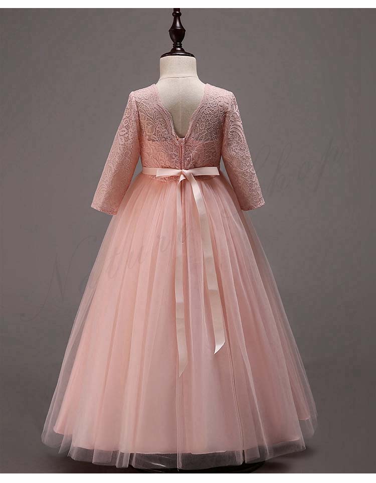 ウェディングドレス ジュニア コンクール ドレス 子供ドレス ピアノ 発表会 ワンピース 長袖 ロング 無地 総レース バックジッパー リボン チュールスカート 結婚式
