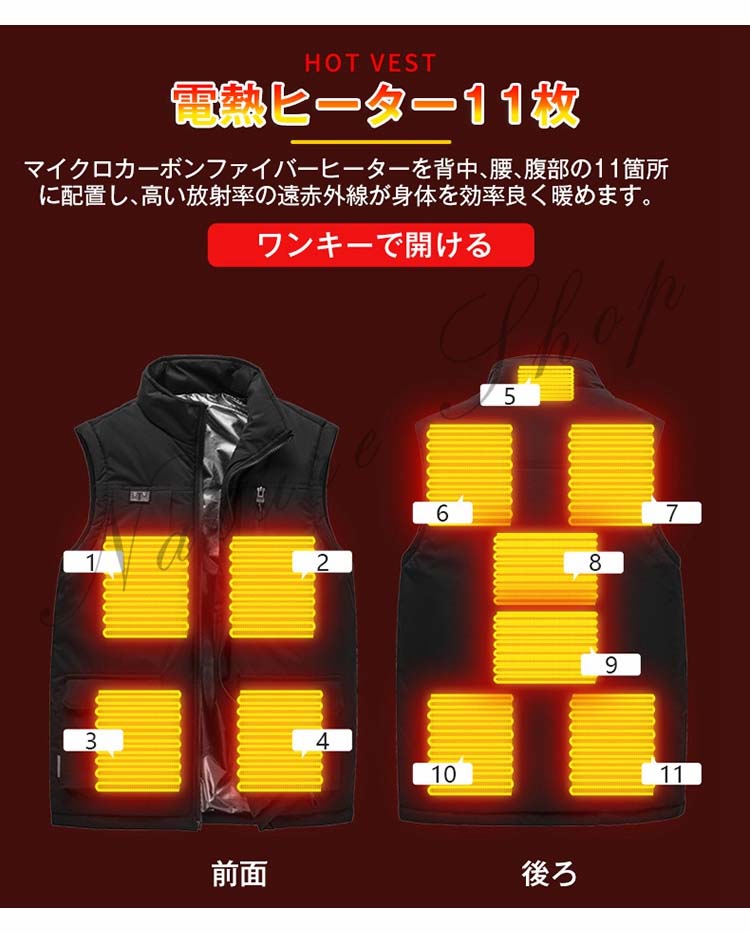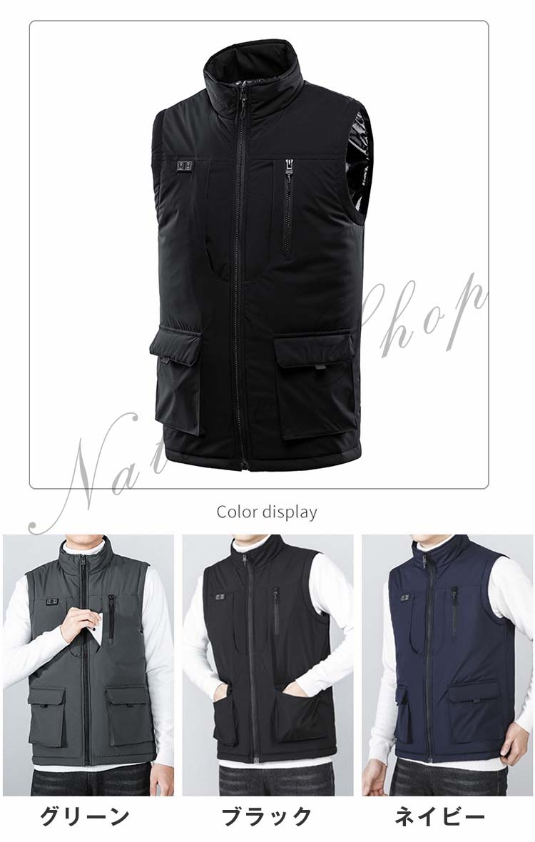 電熱ベスト 加熱ベスト ダウンベスト 前後独立温度調節 3段階温度調整 ヒーターベスト USB充電 電熱ジャケット 11枚ヒーター内蔵 防寒ウェア 水洗い可能 防寒対策 防寒ベスト