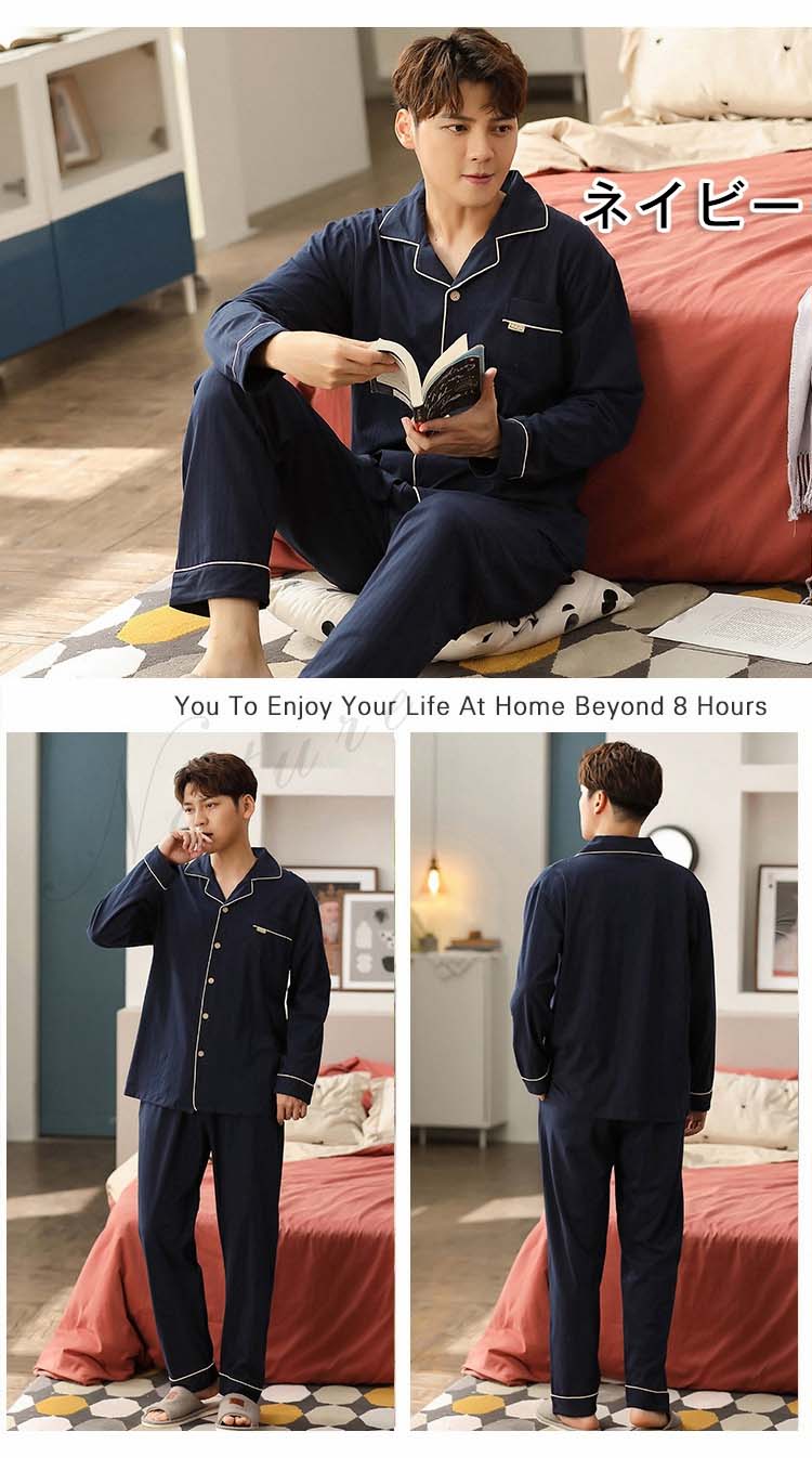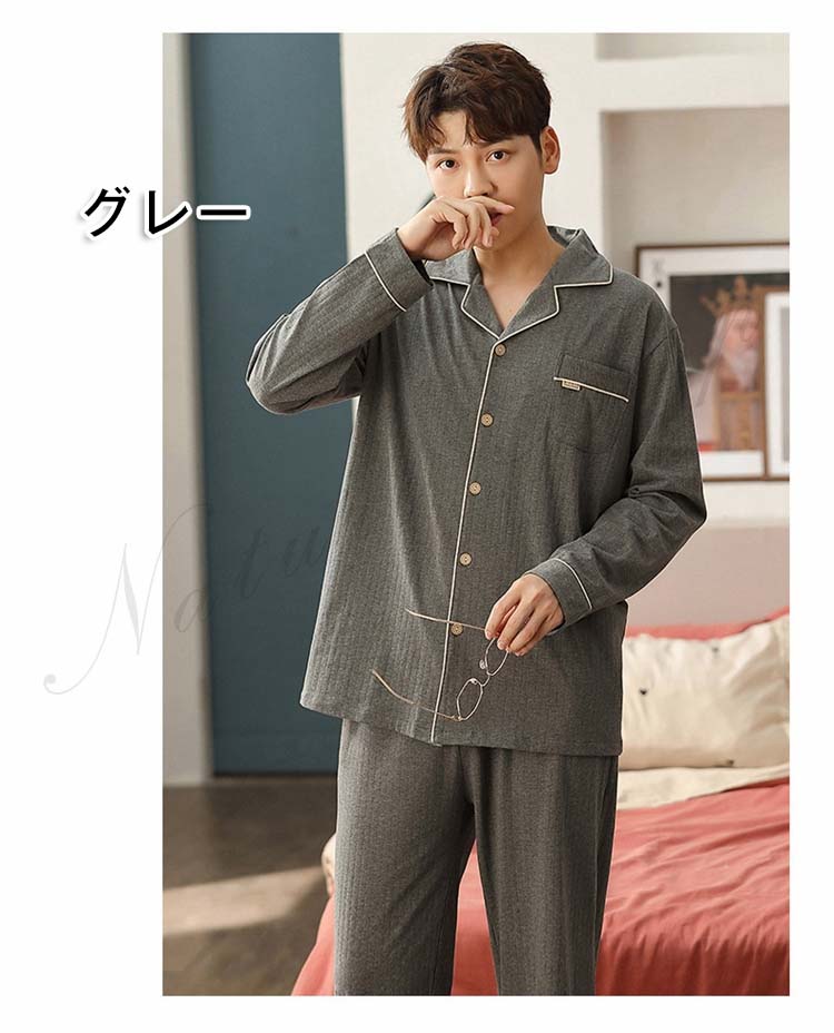 パジャマ メンズ 冬用 ルームウェア 前開き セットアップ 男性 綿混 春 パジャマ 長袖 プレゼント 無地 寝巻き 大きいサイズ ナイトウエア 2点セット 秋冬 暖かい 紳士