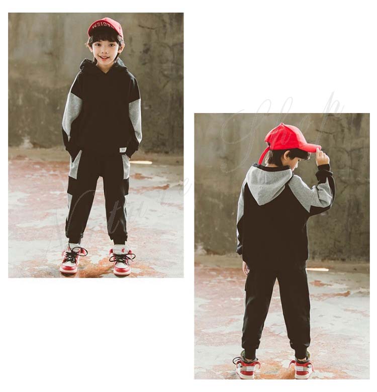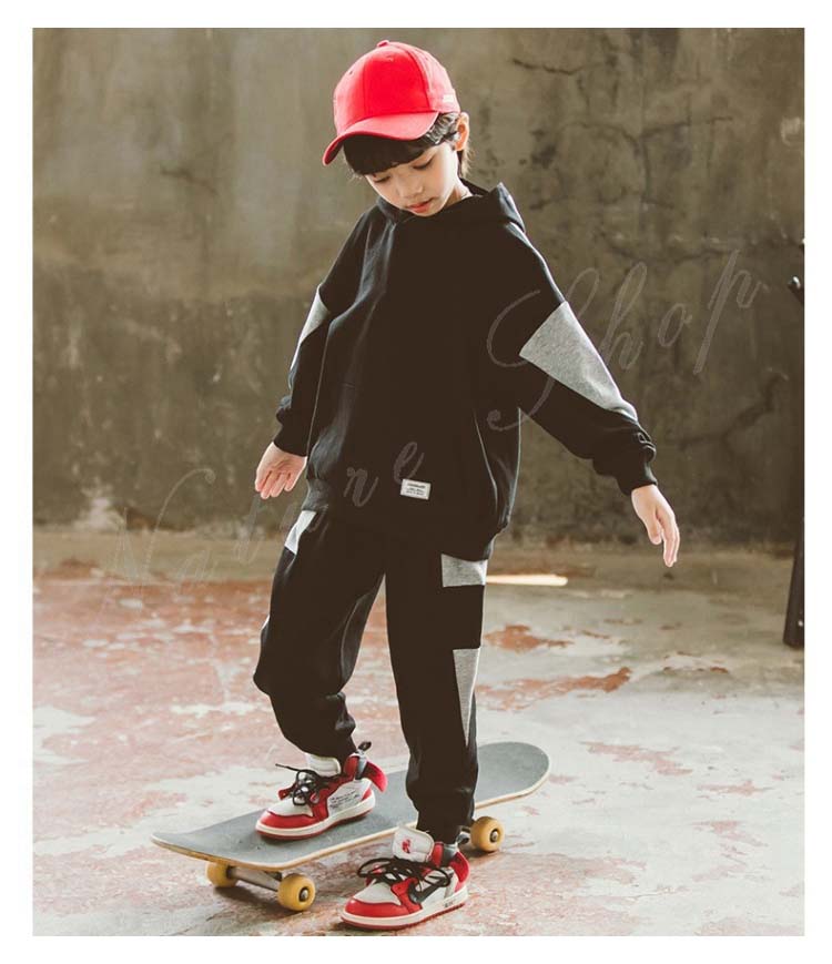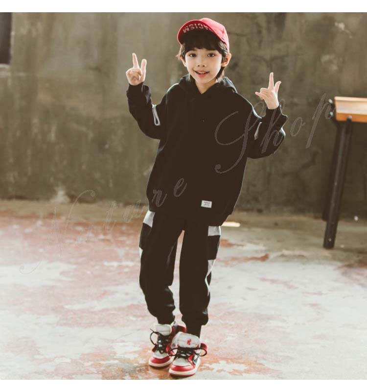 スポーツウェア メンズ ジュニア キッズ セット 子供服 子ども服 男の子 セットアップ スウェット 長袖 パーカー フード付き 長ズボン 上下セット 2点セット 黒 運動着