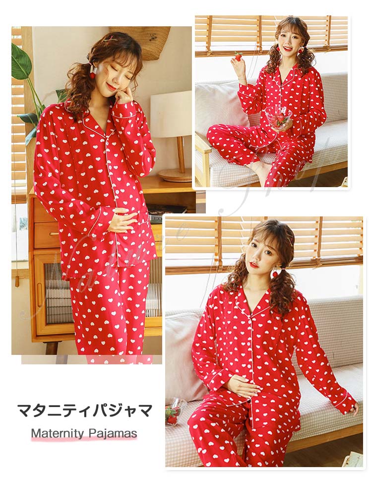 授乳服 マタニティパジャマ 綿100% 2点セット 授乳口付き 前開き マタニティ パジャマ 春 夏 秋 産前 産後 ルームウェア ウエスト調整ゴム付 ナイティウェア