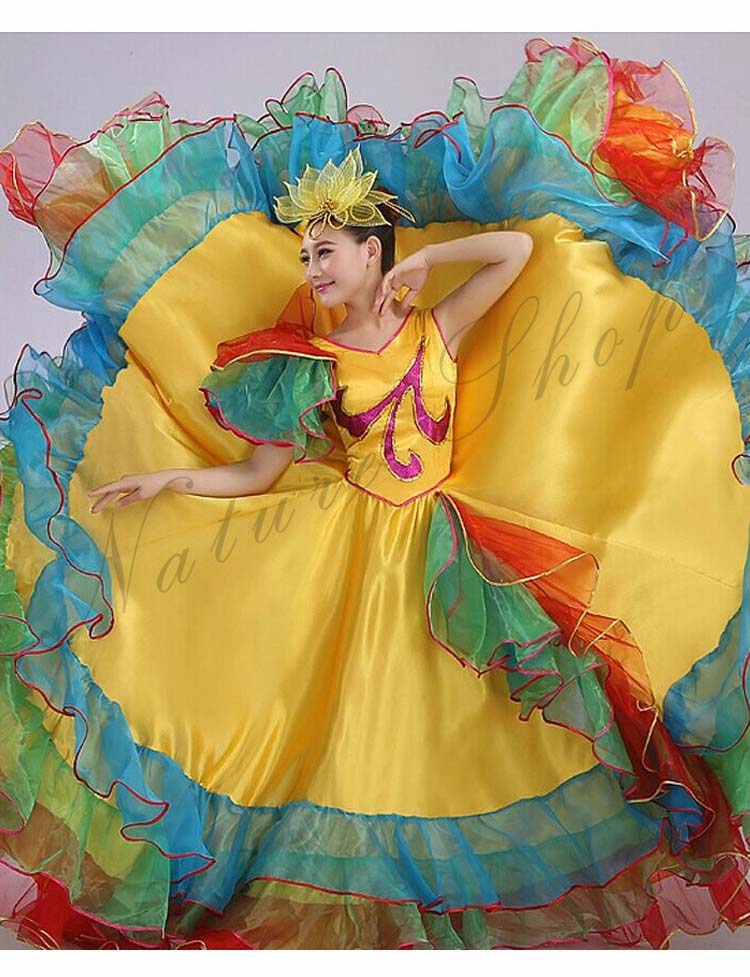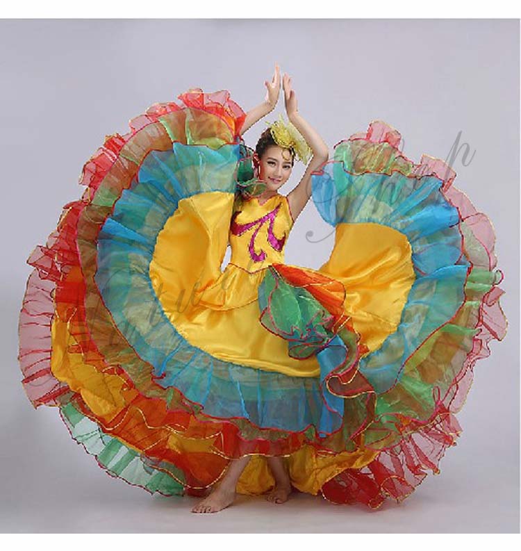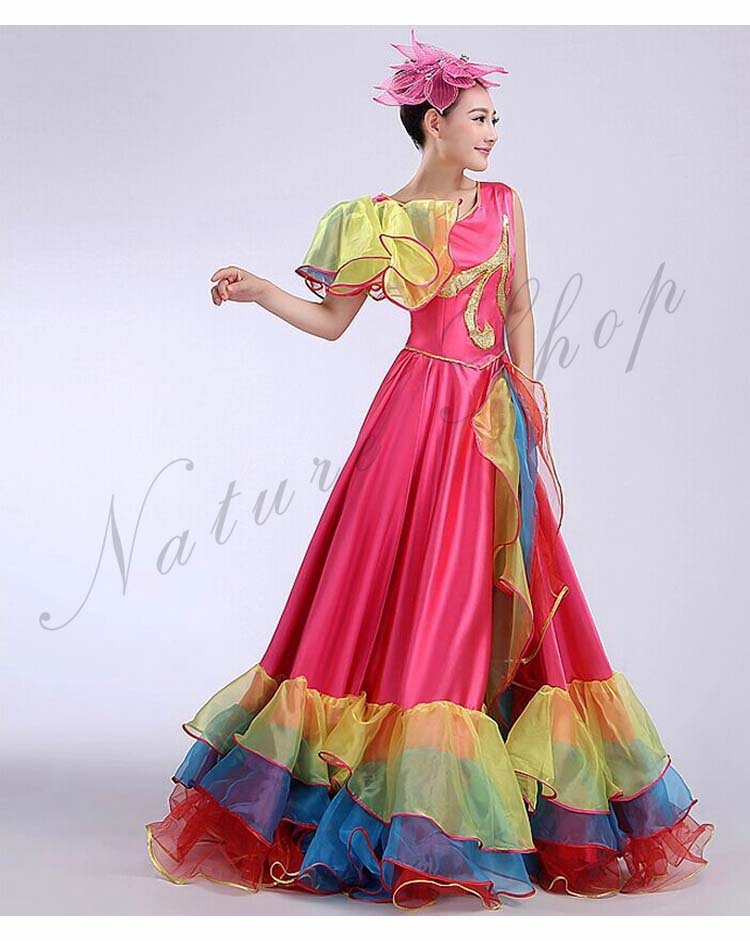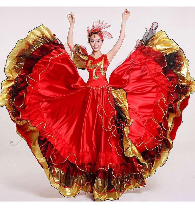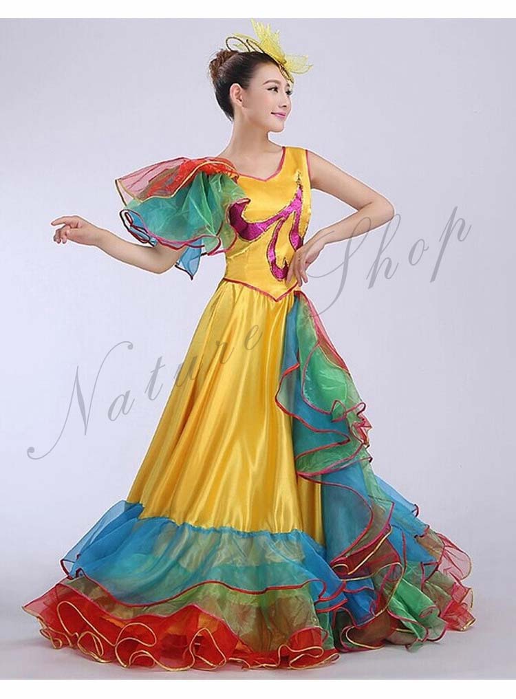 フラメンコワンピース イベント団体ステージダンス衣装 パーティー モダンドレス タンゴ ワルツ大型舞台ステージ衣装 合唱団社交ラテンダンス衣装 華やか舞台ダンスフレアワンピース