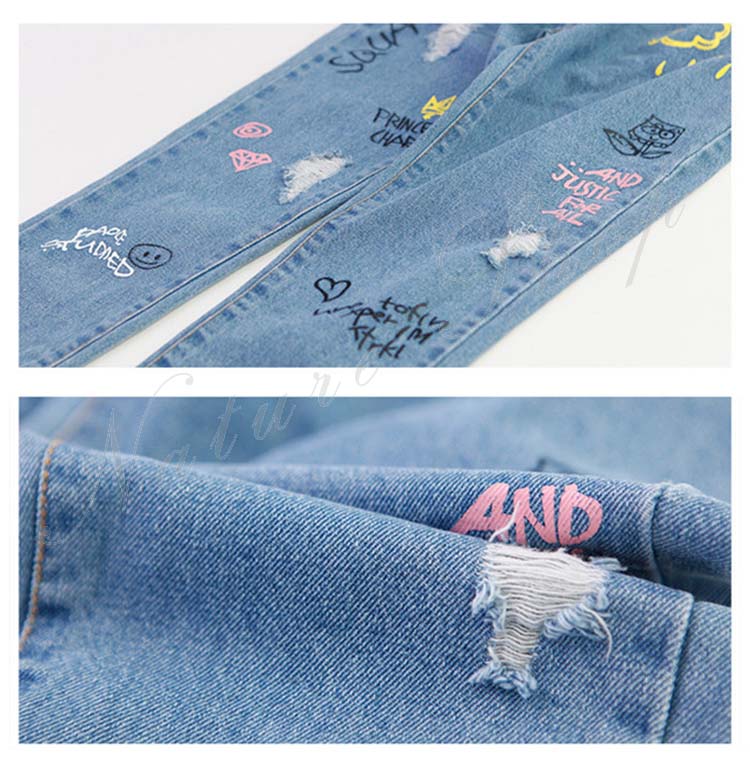 デニムパンツ ビジュー付き