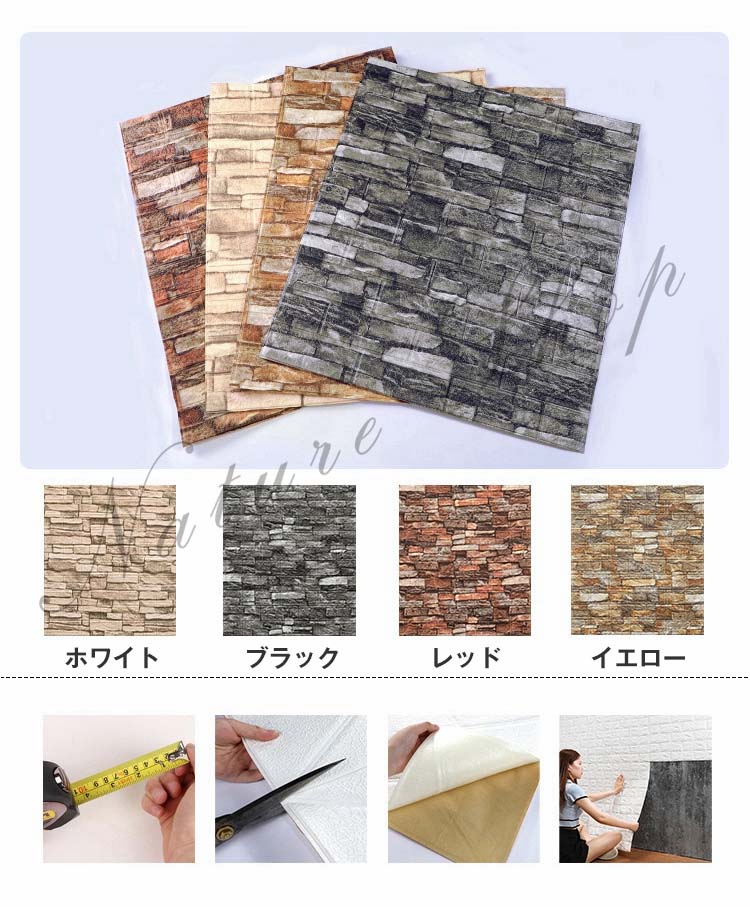 壁紙シール 約70*77cm 10枚セット 3D立体壁紙 防音シート 超大判 断熱 壁材 無毒 無臭 レンガ調 DIY クッションシート カット可能 防水 防音 備える 大判 ウォールステッカー