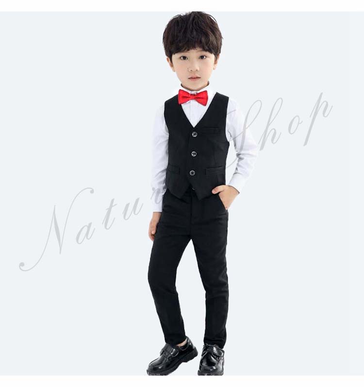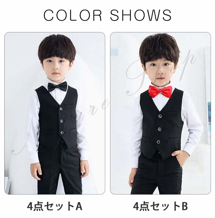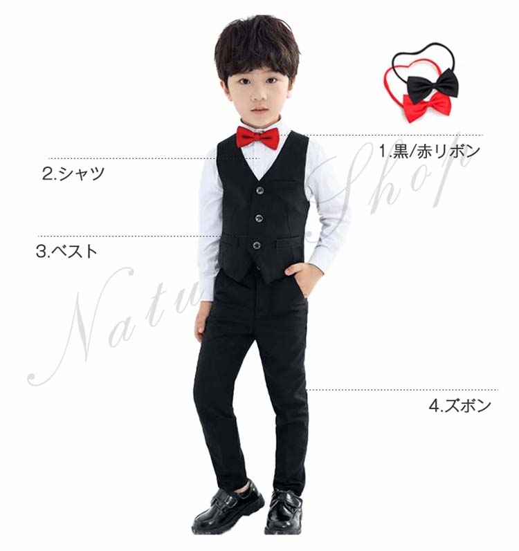 フォーマルスーツ 男の子 4点セット おしゃれ 子供服 長袖 入学式 スーツ 男の子 卒園式 キッズ お受験 発表会 結婚式 七五三 フォーマル パンツ ズボン ベスト 蝶ネクタイ セットアップ